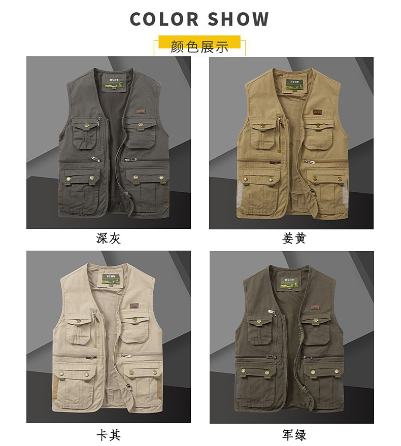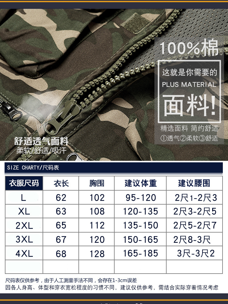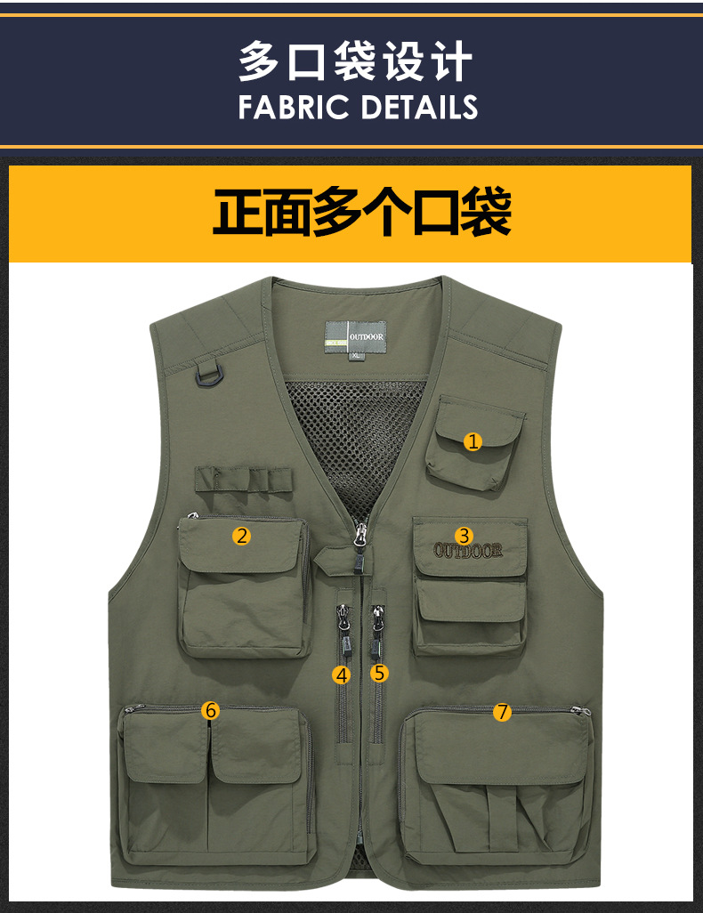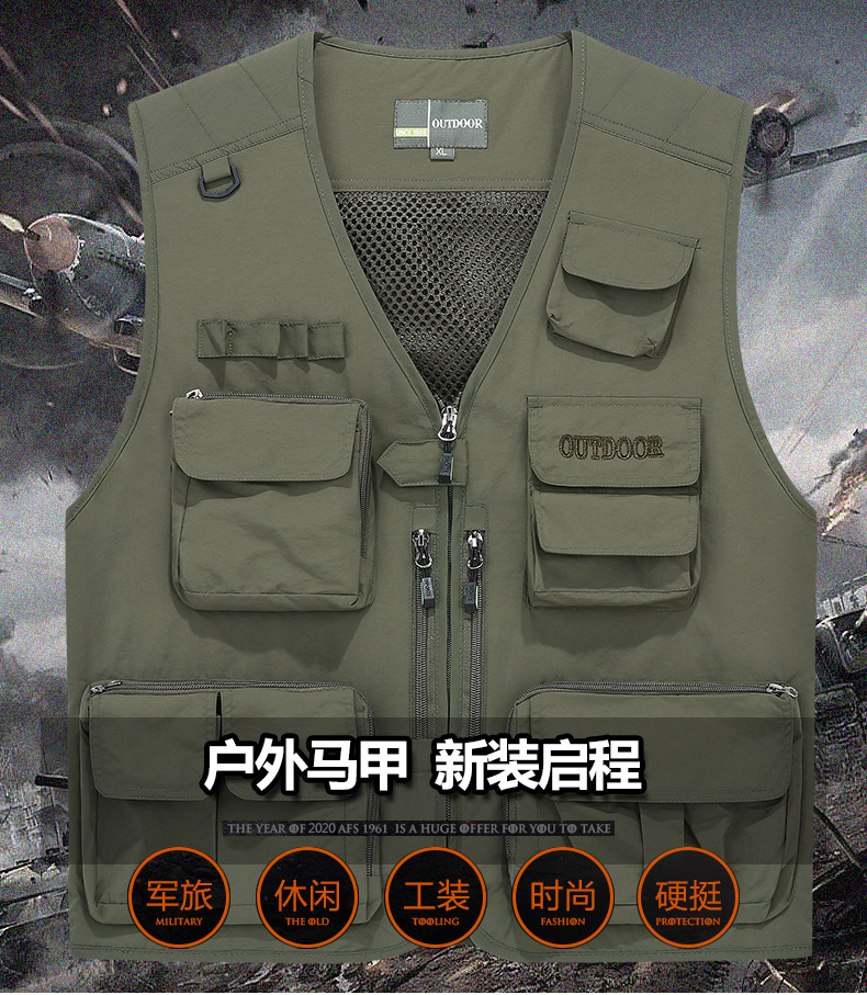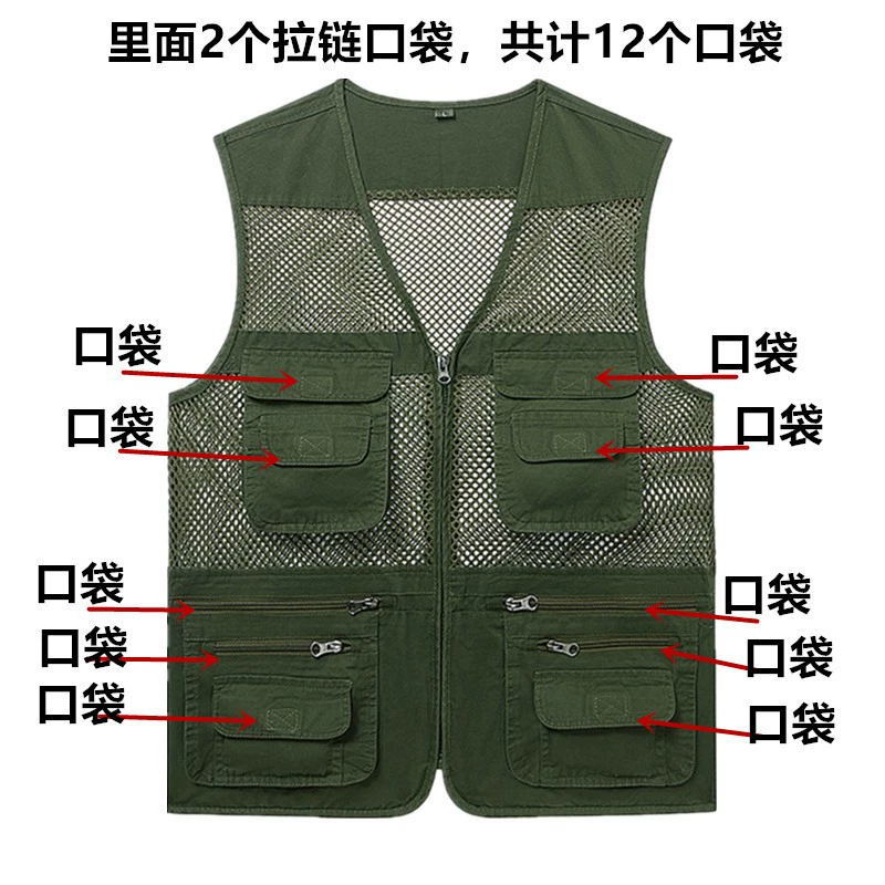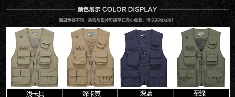 Logotipo impreso personalizado fotógrafo reportero pesca ropa de trabajo Chaleco de malla de algodón camuflaje multi-Bolsillo publicidad ropa de trabajo