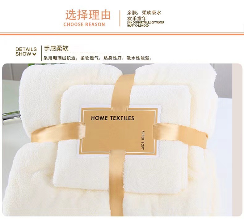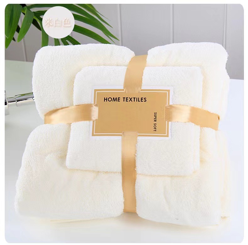 Toallas de coral de alta densidad, toallas de baño de mano rápida, toallas absorbentes, toallas blancas beige.