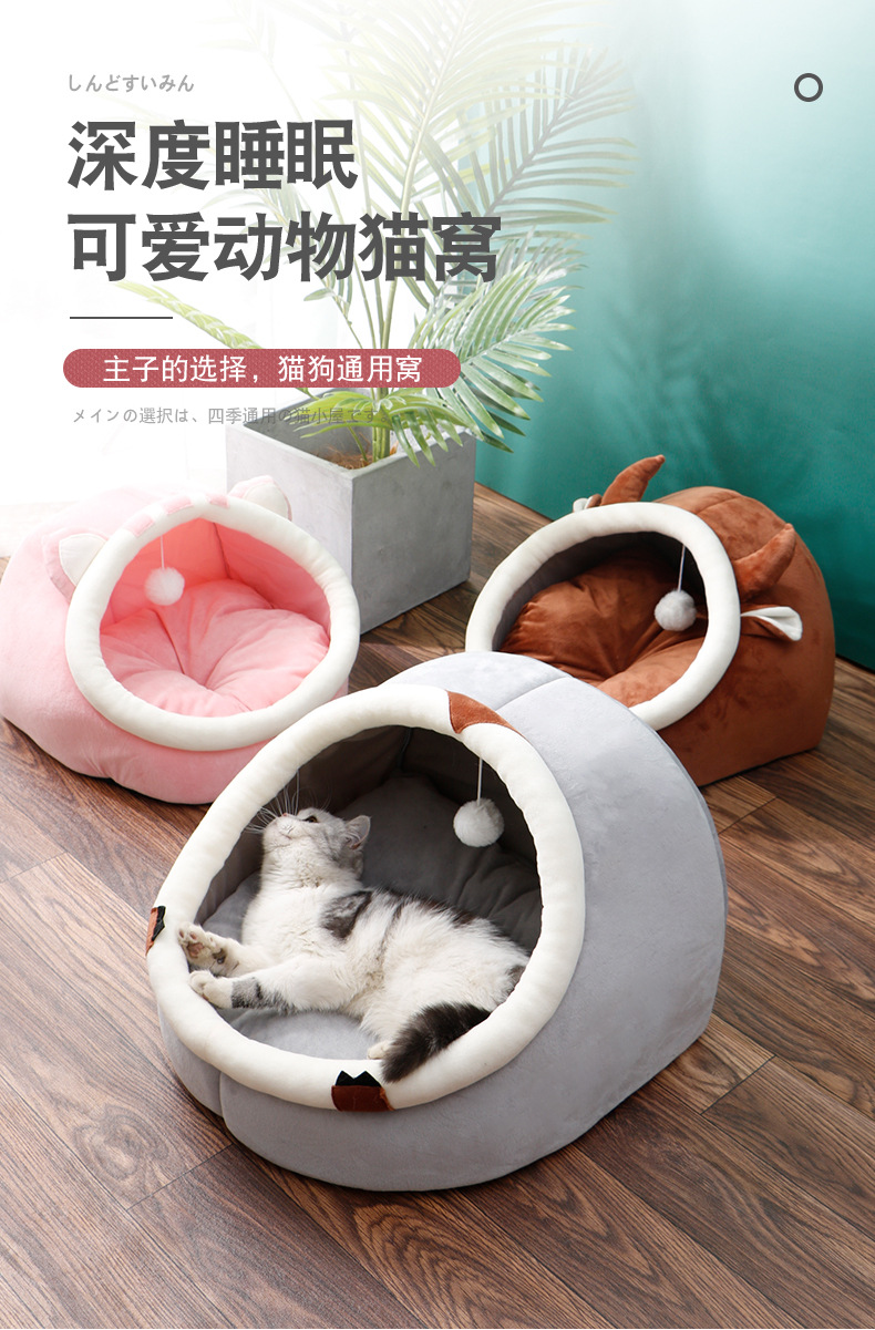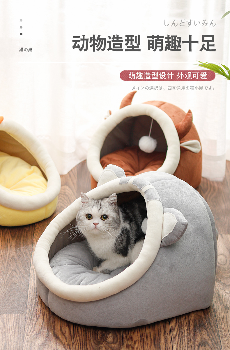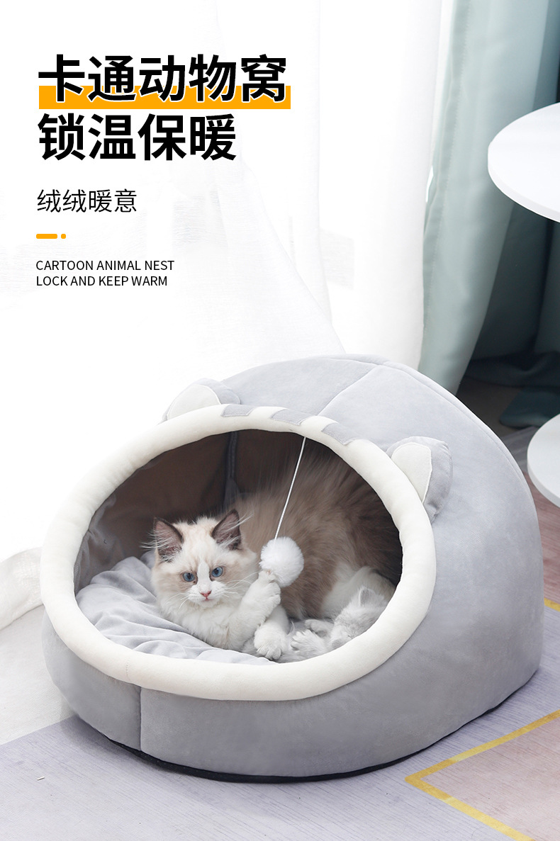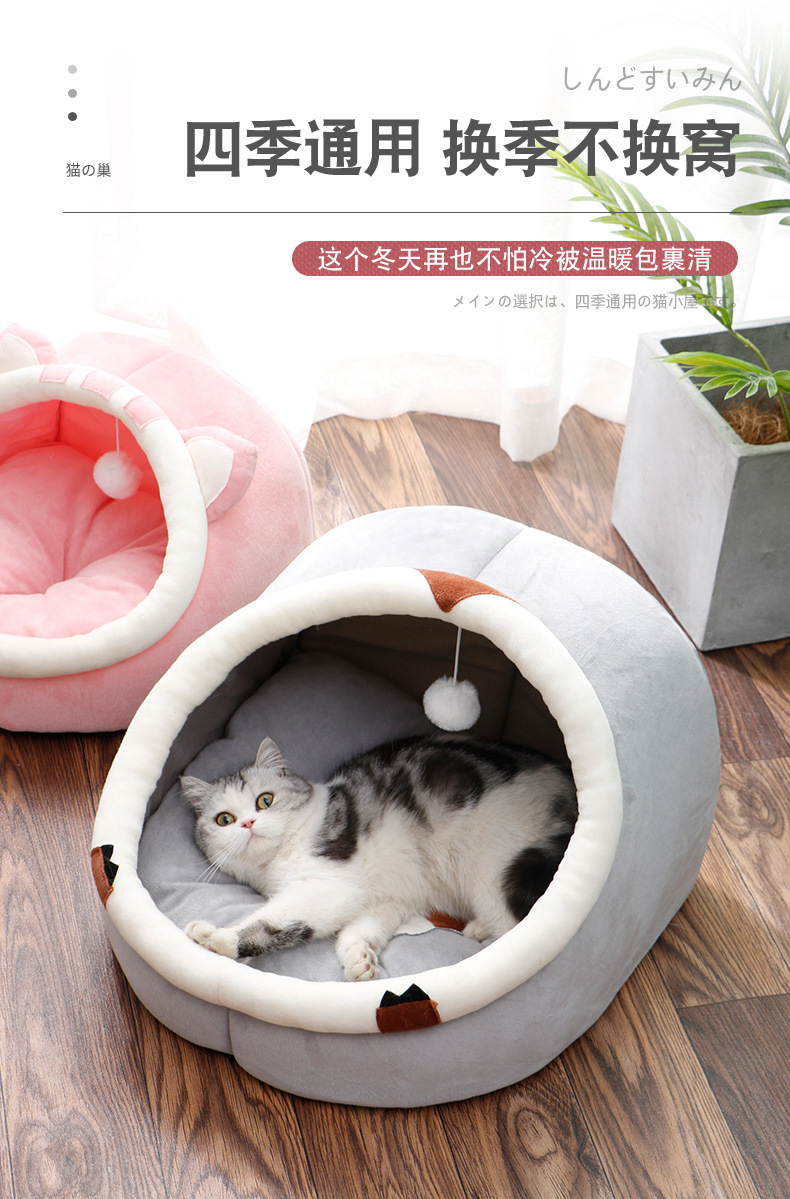 Cama de gatos de verano de cuatro estaciones, casa de gatos de verano cerrada, cama de gatos, perros de verano, suministros de calefacción de invierno
