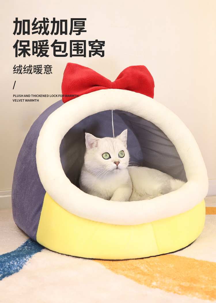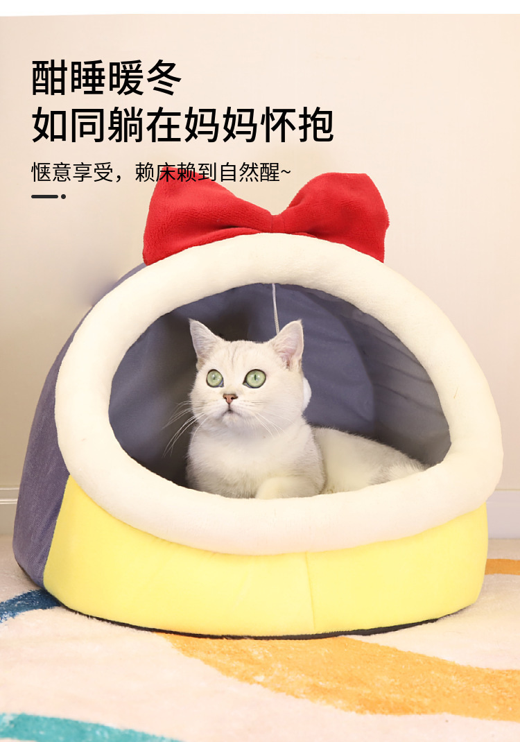 Nido para gatos y perros semicerrado engrosado para mascotas princesa invierno cálido engrosado para mascotas Nido general para cuatro estaciones