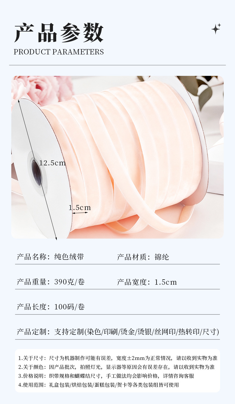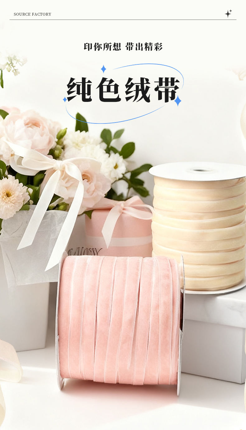 Cinta flocada de 1,5 cm Terciopelo de terciopelo con decoración de regalo de flores Accesorios para el cabello de bricolaje hechos a mano