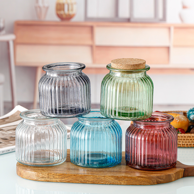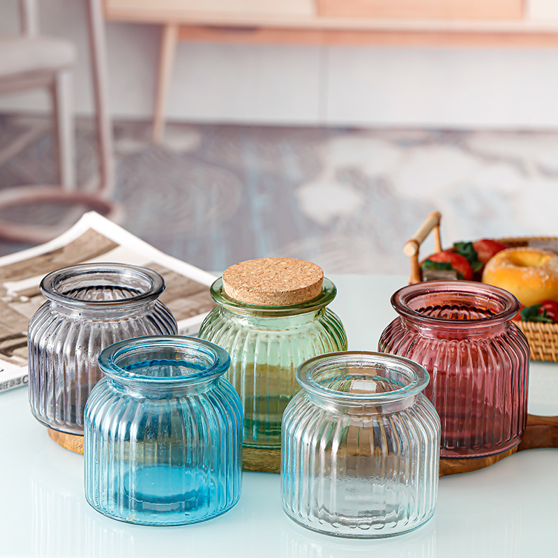 Fábrica al por mayor cosecha Festival gran boca calabaza decorativa botella de vidrio botella de almacenamiento jarra color florero corcho cubierta almacenamiento de calcio de sodio