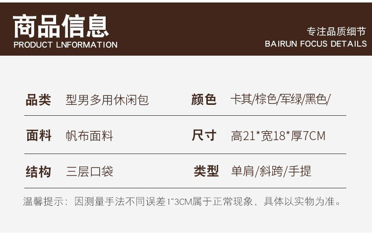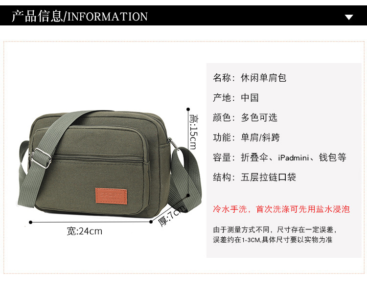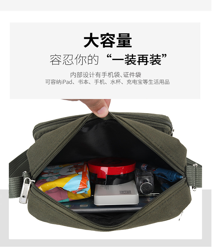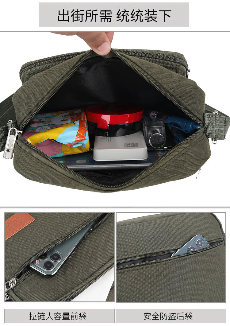 Lienzo pequeño bolso cuadrado bolso de los hombres multi-capa Negocio puesto cartera resistente al desgaste durable de las mujeres de hombro ocasional bolsa de mensajero