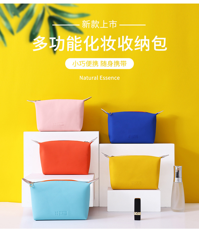 Bolsa de maquillaje bolsa de almacenamiento bolsas de bolsas de pellizco de piel pu bolsa de almacenamiento portátil simple bolsa de maquillaje plegable macarón impermeable