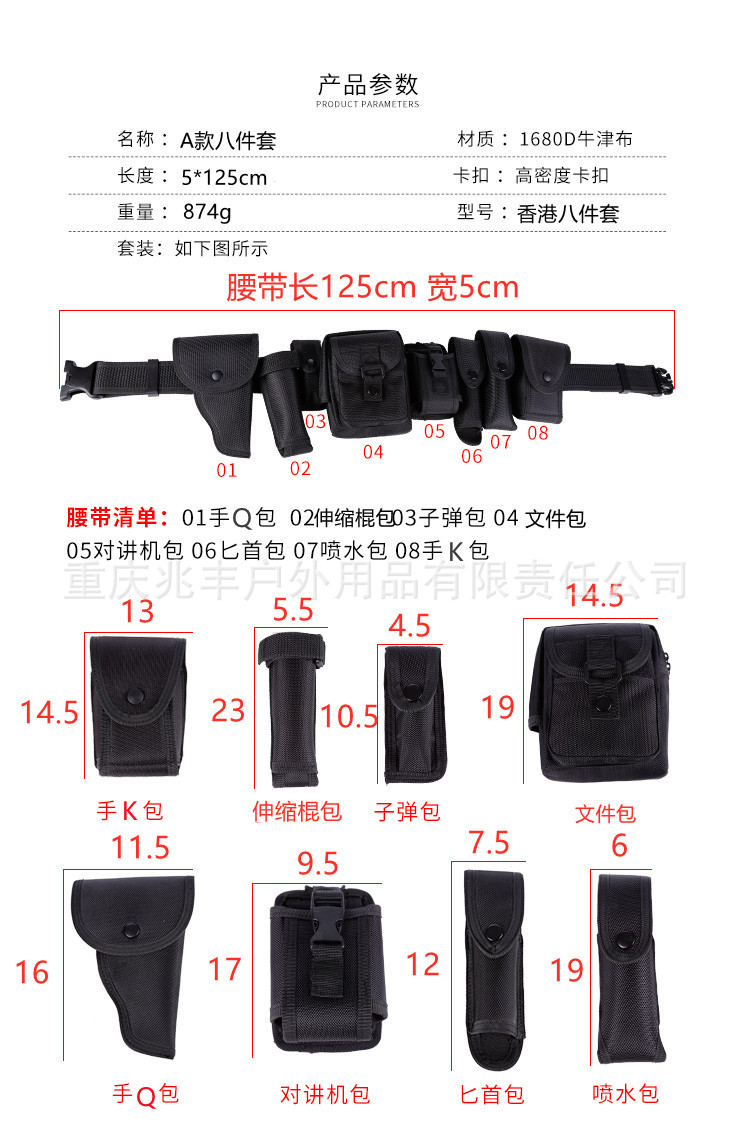 Cinturón Táctico Multifuncional (Modelo A), Set de 8 Piezas para Walkie-Talkie, Linterna, etc.