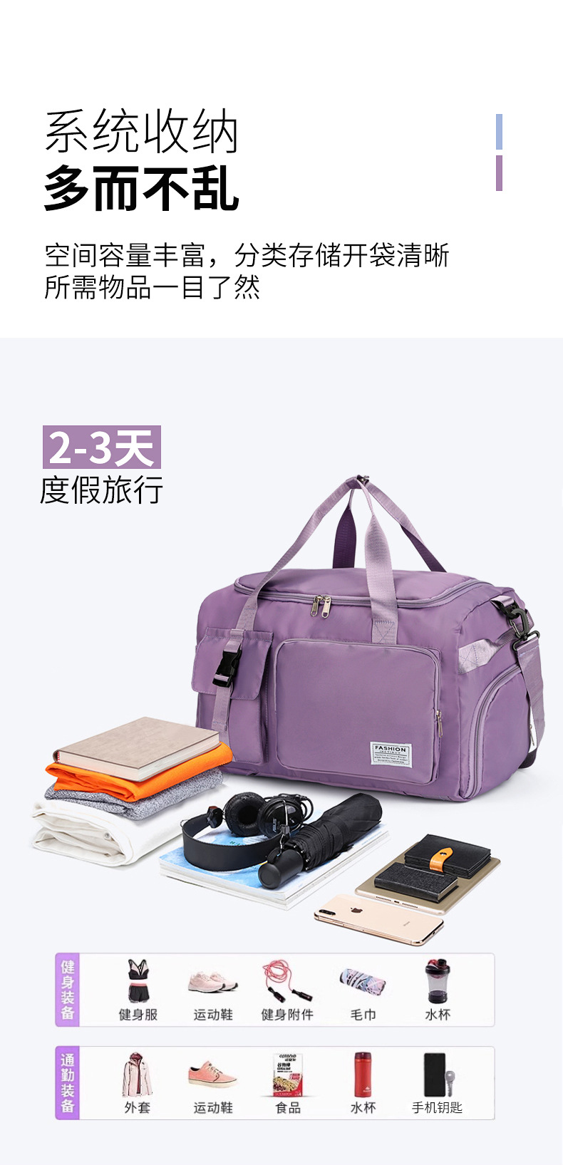 Bolsa de viaje de gran capacidad de entrenamiento deportivo femenino bolsa de fitness multifuncional mochila portátil de hombro bolsa de viaje corto