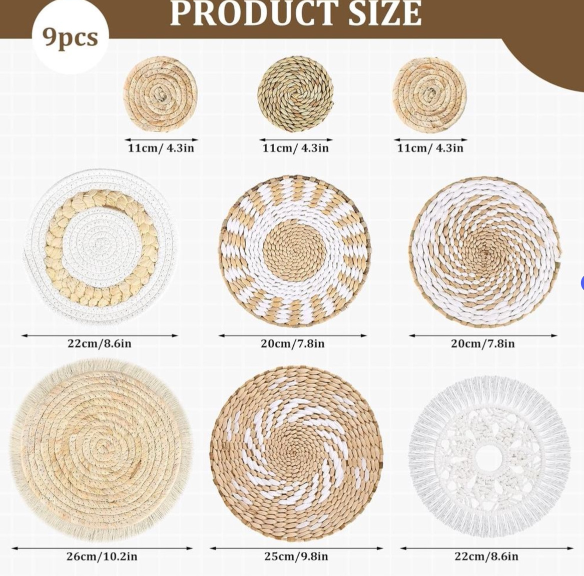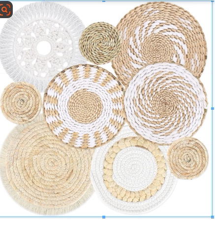 Set de Decoración de Pared Tejido de Paja, Estilo Boho, con Calabazas y Piel de Maíz