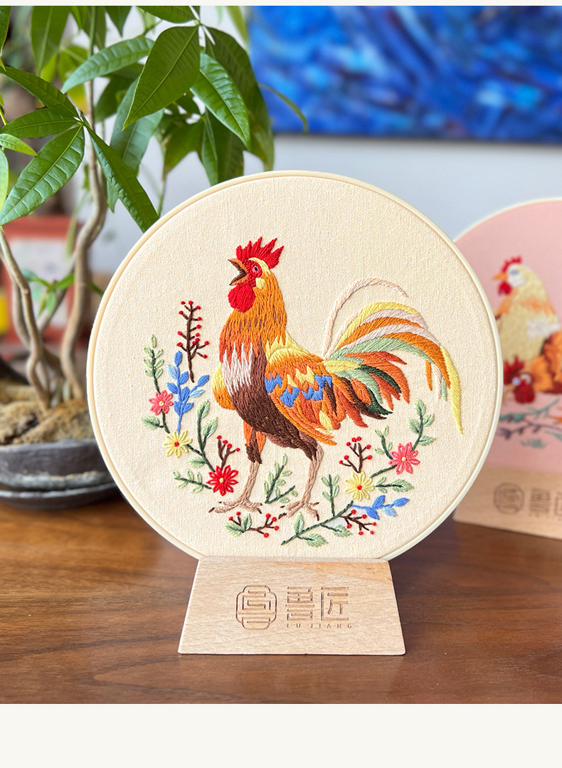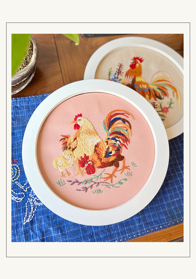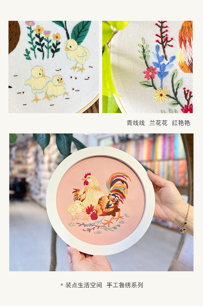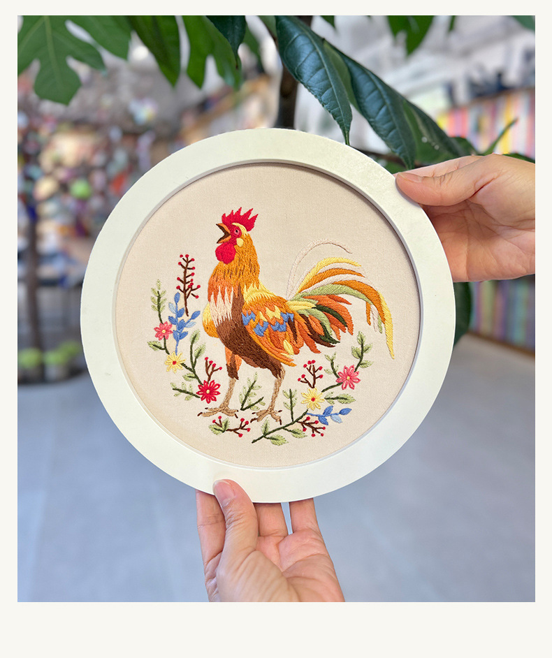Pintura colgante de gran gallo Lu bordado hecho a mano conjunto de bordado de flores y plantas de estilo europeo paquete de material de bricolaje bordado pintura de punto de cruz para principiantes