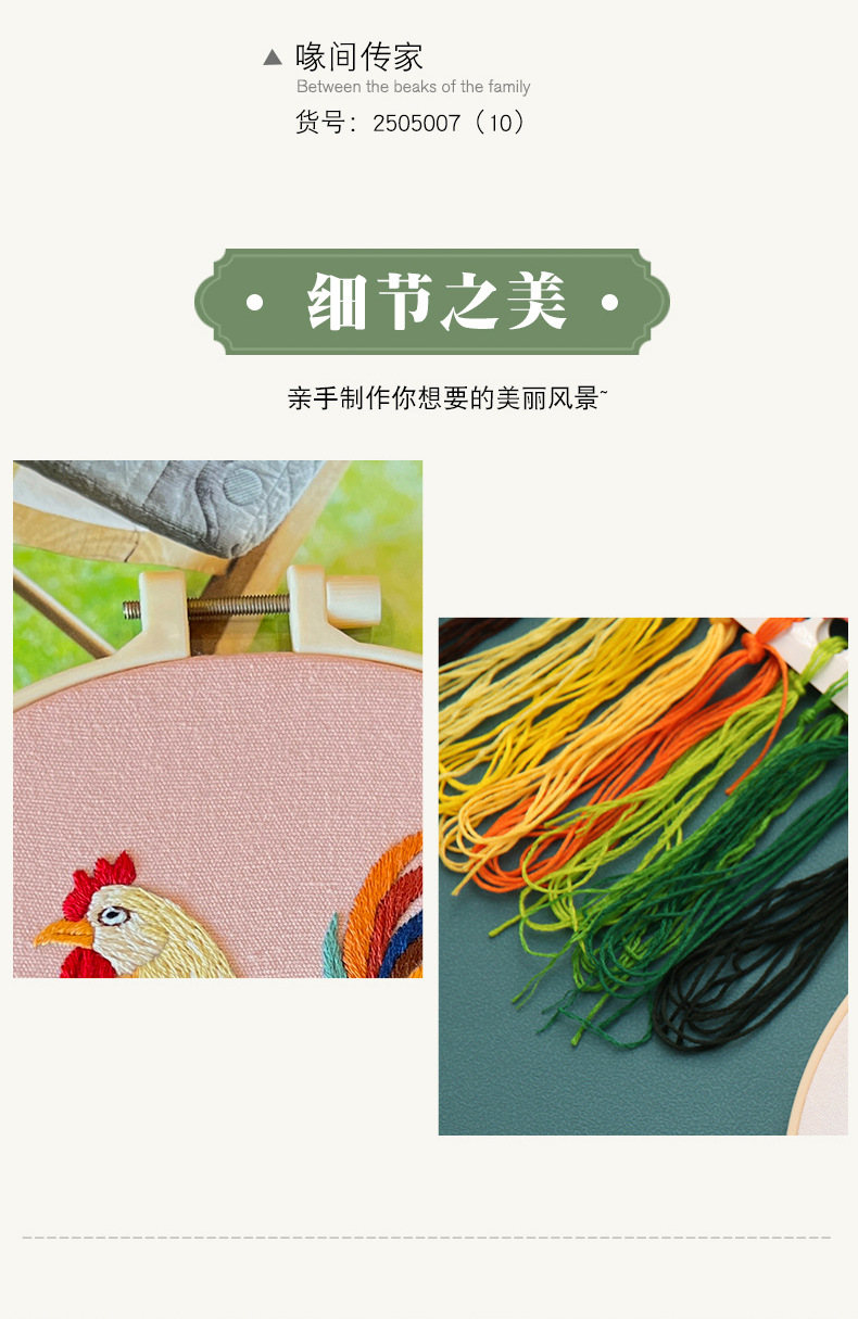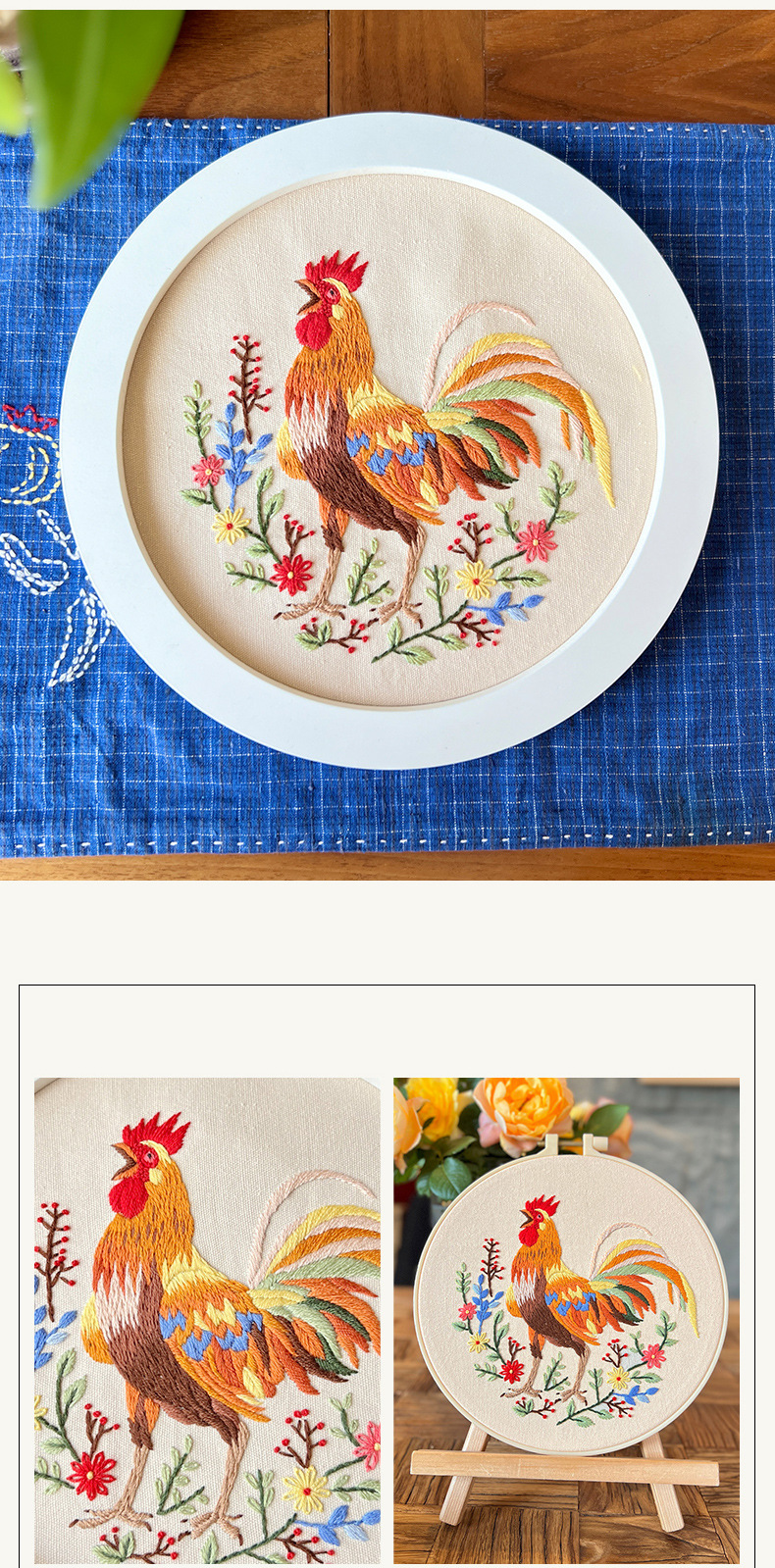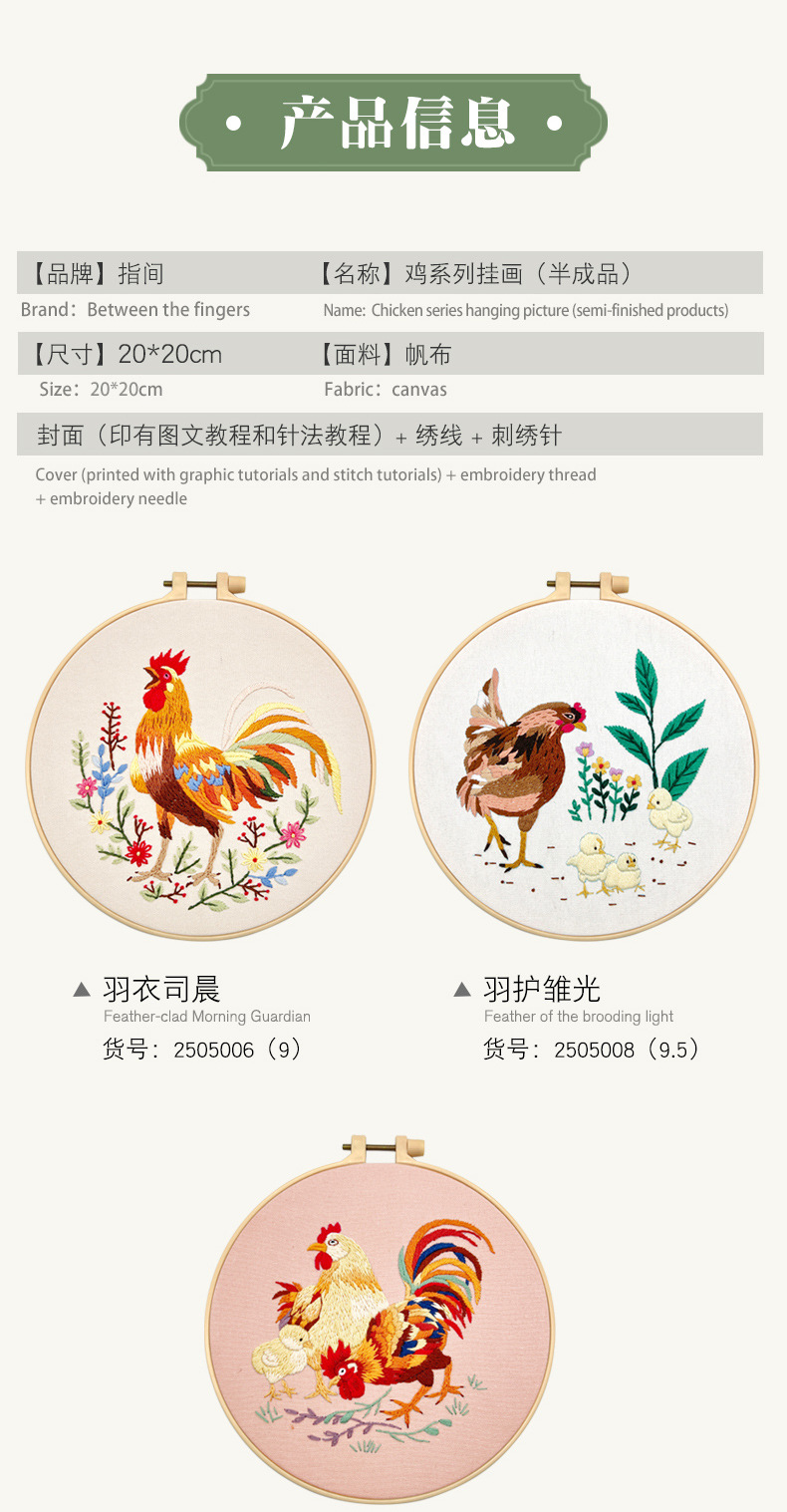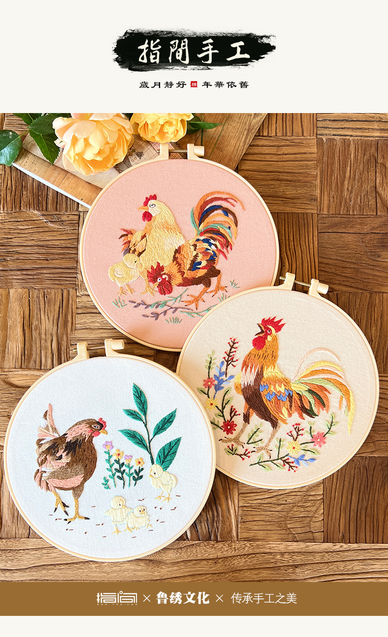 Pintura colgante de gran gallo Lu bordado hecho a mano conjunto de bordado de flores y plantas de estilo europeo paquete de material de bricolaje bordado pintura de punto de cruz para principiantes