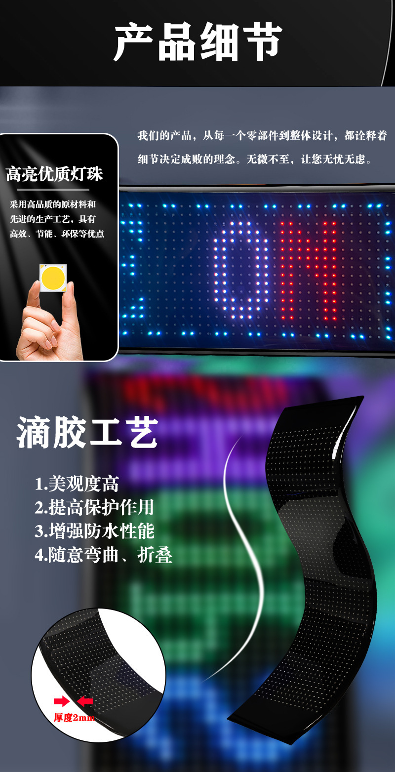 LED pantalla inteligente flexible RGB pantalla suave mágica pantalla de publicidad impermeable pegatinas de coche inteligente pantalla de emoji 1664 píxeles