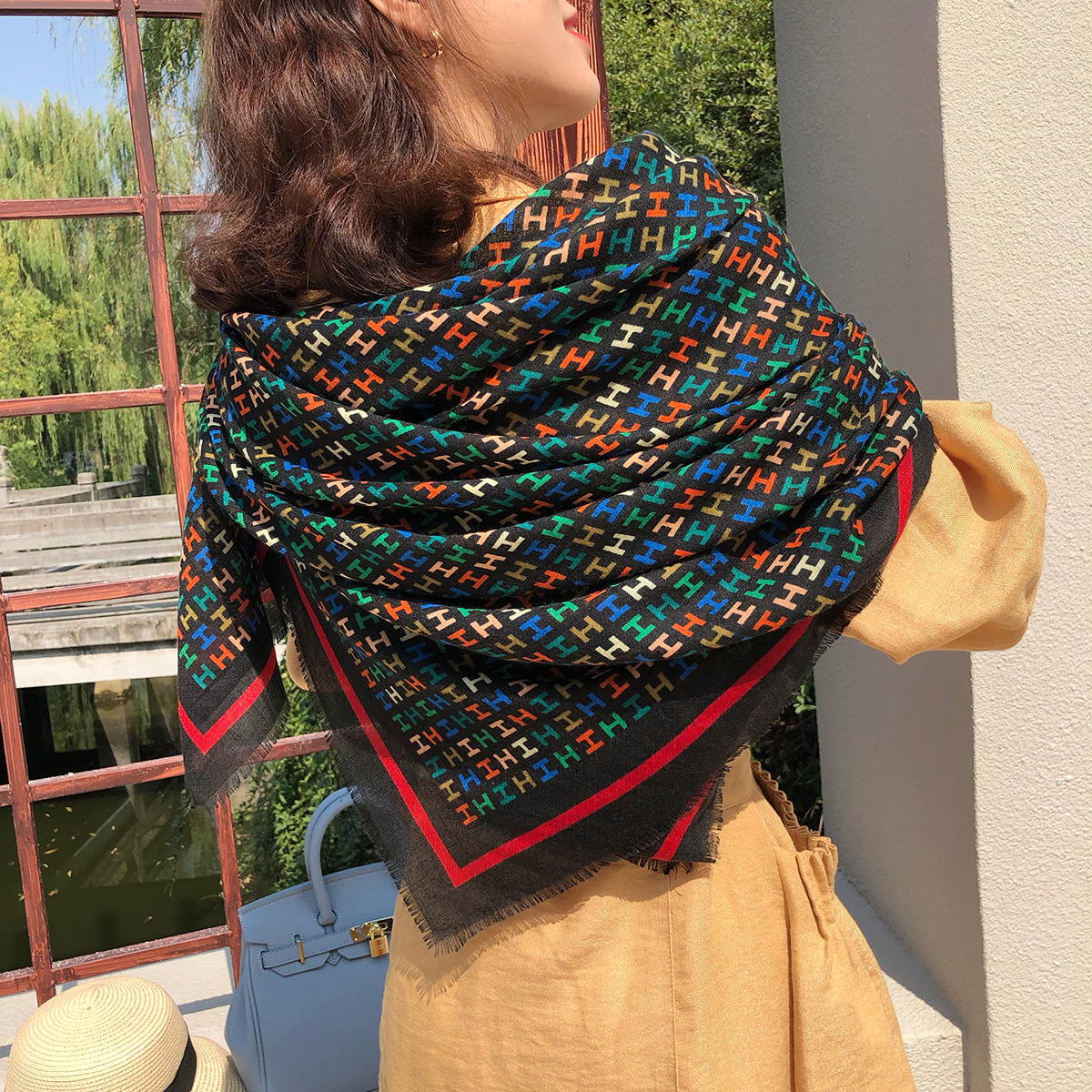 2025 Primavera Nuevo Clásico Bufanda Cuadrada Grande de Cuadros de Parches Moda Decorativa Versátil Protección Solar Impresa Chal Bufanda para Mujeres.