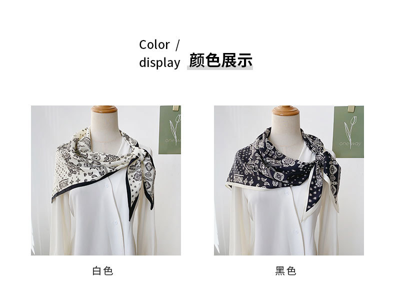 Versión coreana del pañuelo de seda triangular con estampado de anacardo para mujer, ambiente de verano, usar pañuelo en la cabeza, accesorios de banda para el cabello de moda de seda artificial