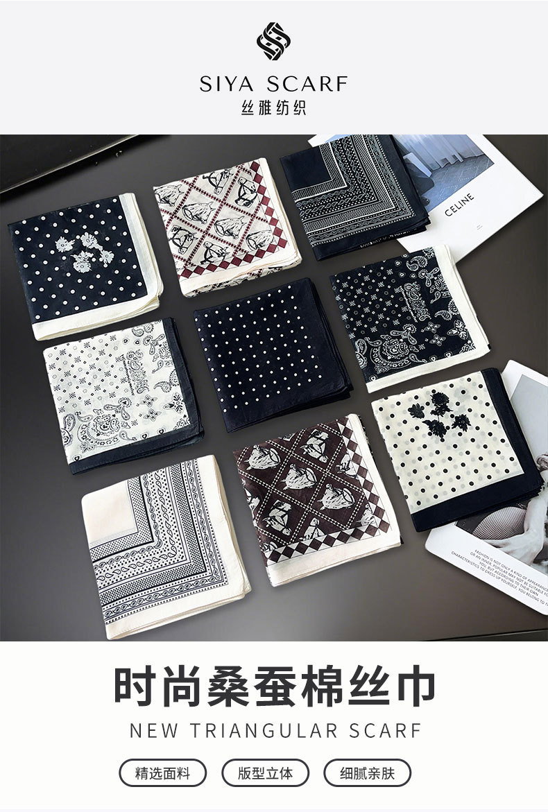 ¡Deja tu propio dinero! Mezcla de algodón puro de seda Los bloggers coreanos recomiendan ins Pañuelo de seda de flores de anacardo literario retro Pañuelo cuadrado pequeño