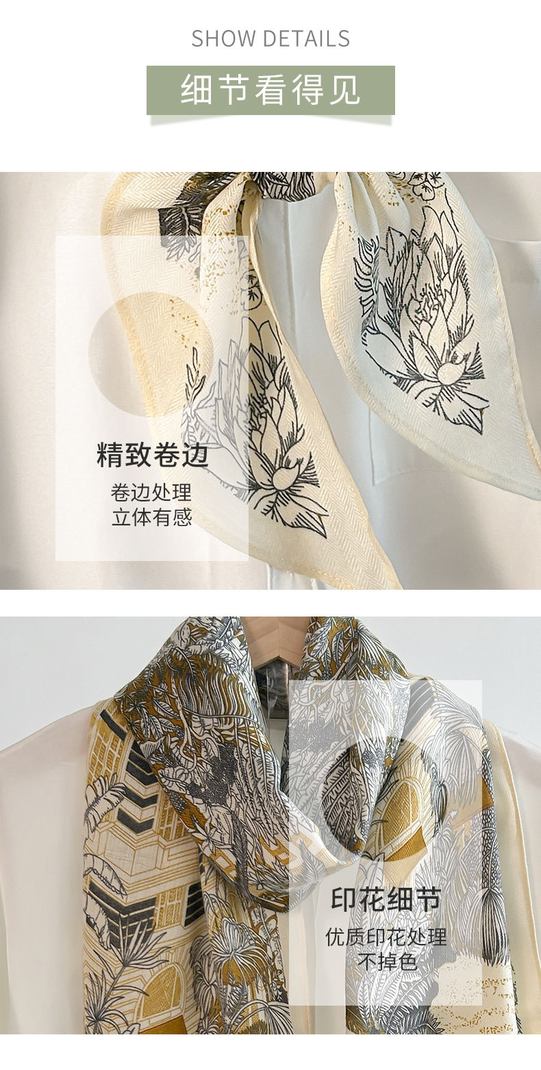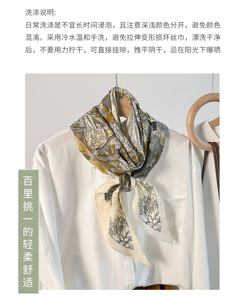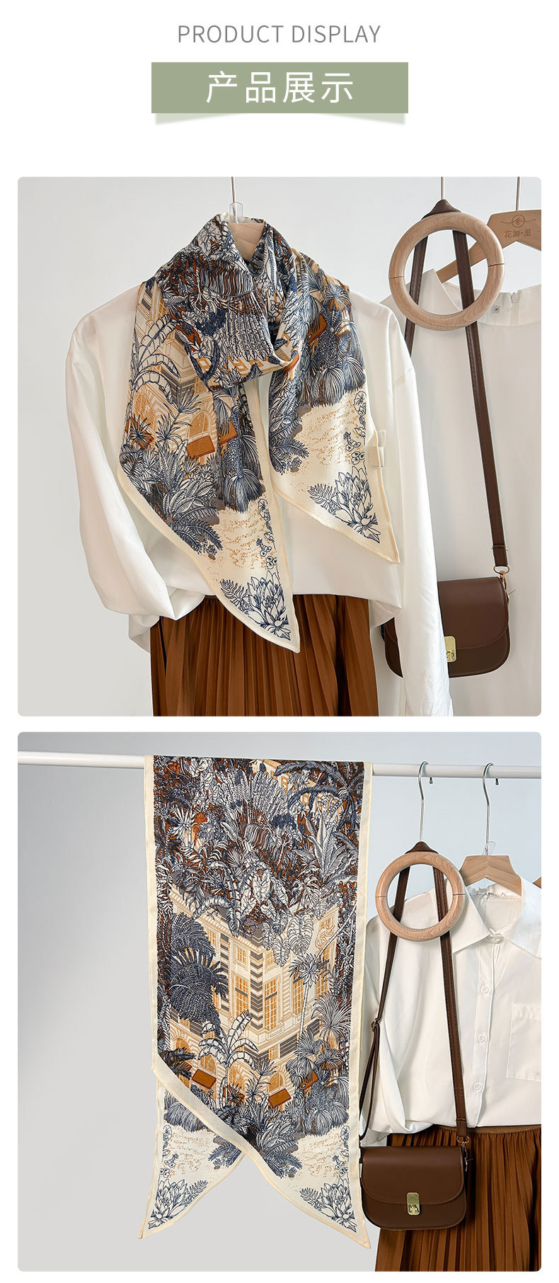 Estilo coreano nueva bufanda paralela bufanda de seda de imitación primavera y otoño damas estilo fino de alta gama planta bufanda con estampado de flores