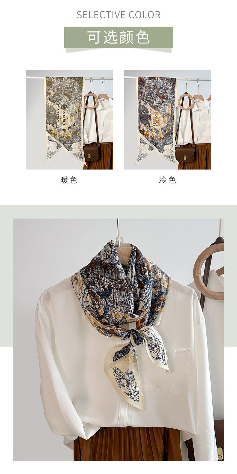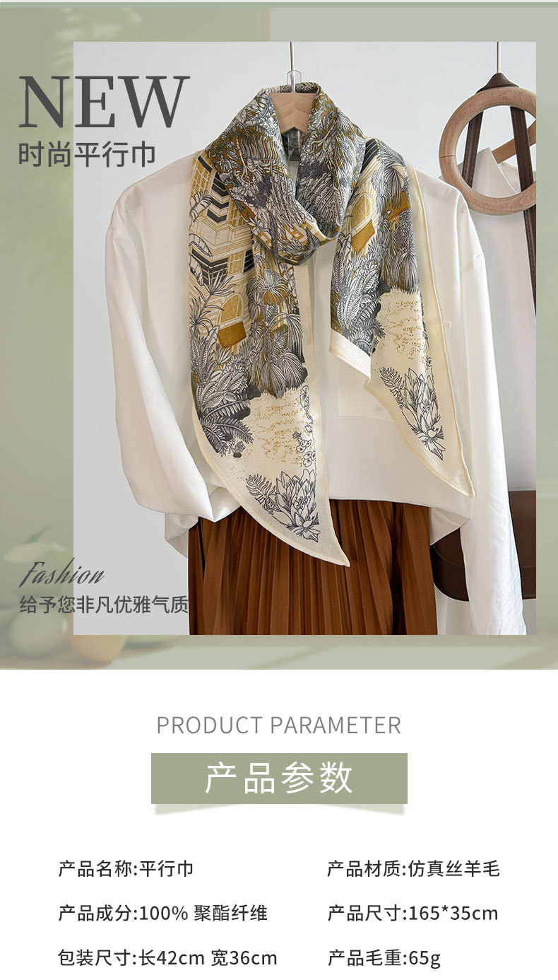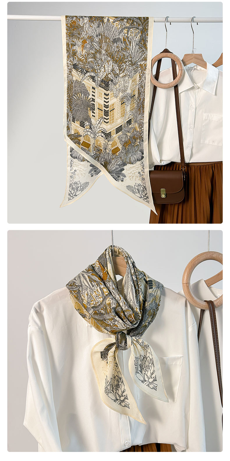Estilo coreano nueva bufanda paralela bufanda de seda de imitación primavera y otoño damas estilo fino de alta gama planta bufanda con estampado de flores
