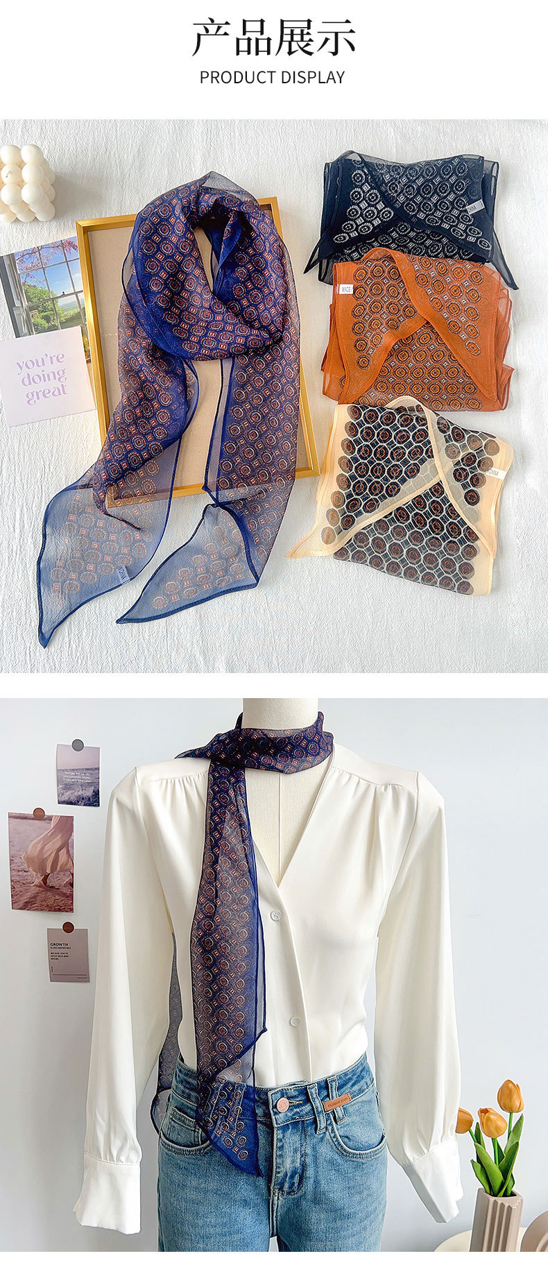 Cinta de impresión fina de alta calidad de primavera y verano, estilo INS, decoración de ropa de nicho retro, cinta de gasa, regalo de vacaciones