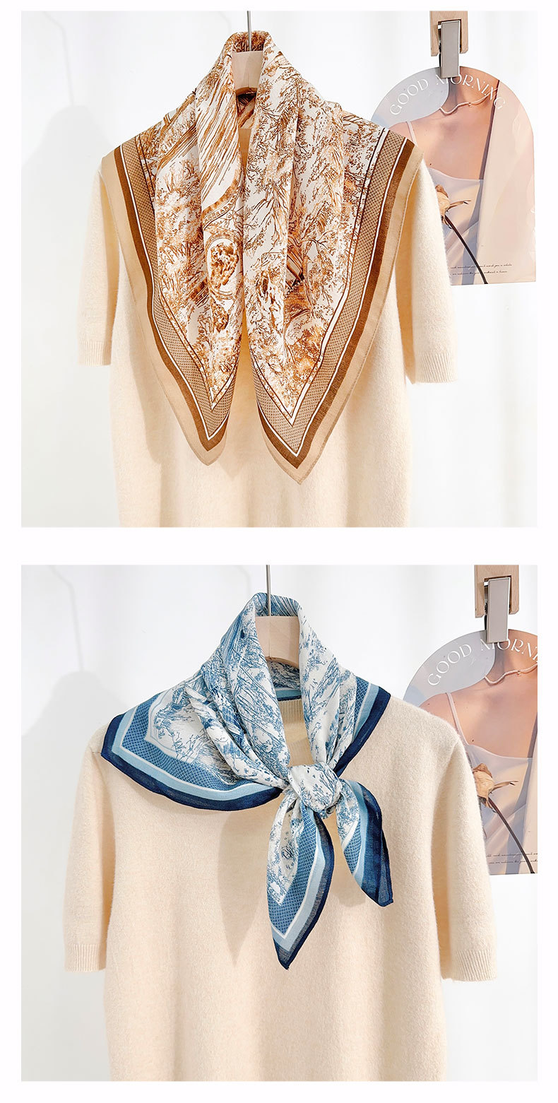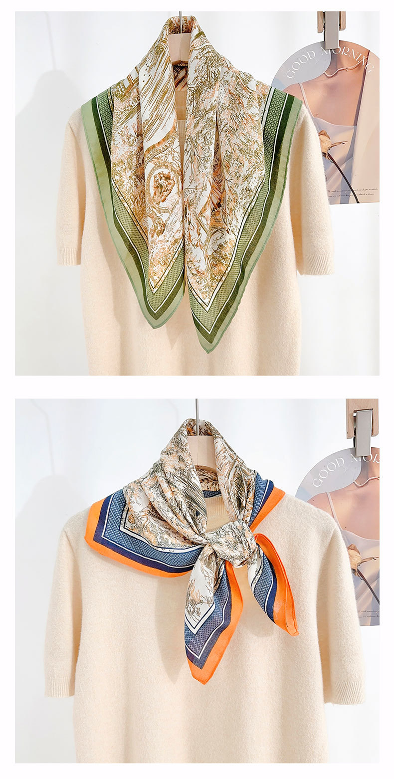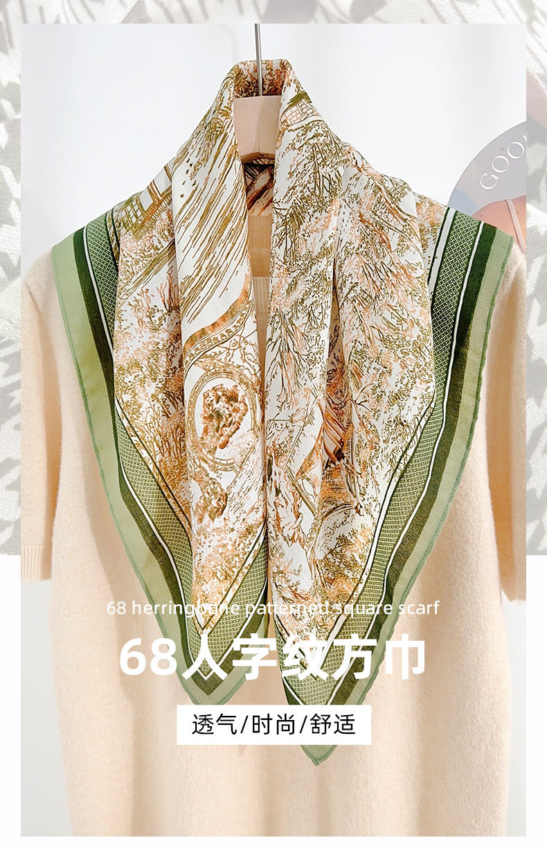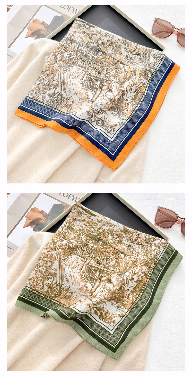 Temperamento de moda japonesa y coreana 68 toallas cuadradas de patrón de personaje de mujer con bufandas profesionales de alto nivel con un nicho de pañuelo