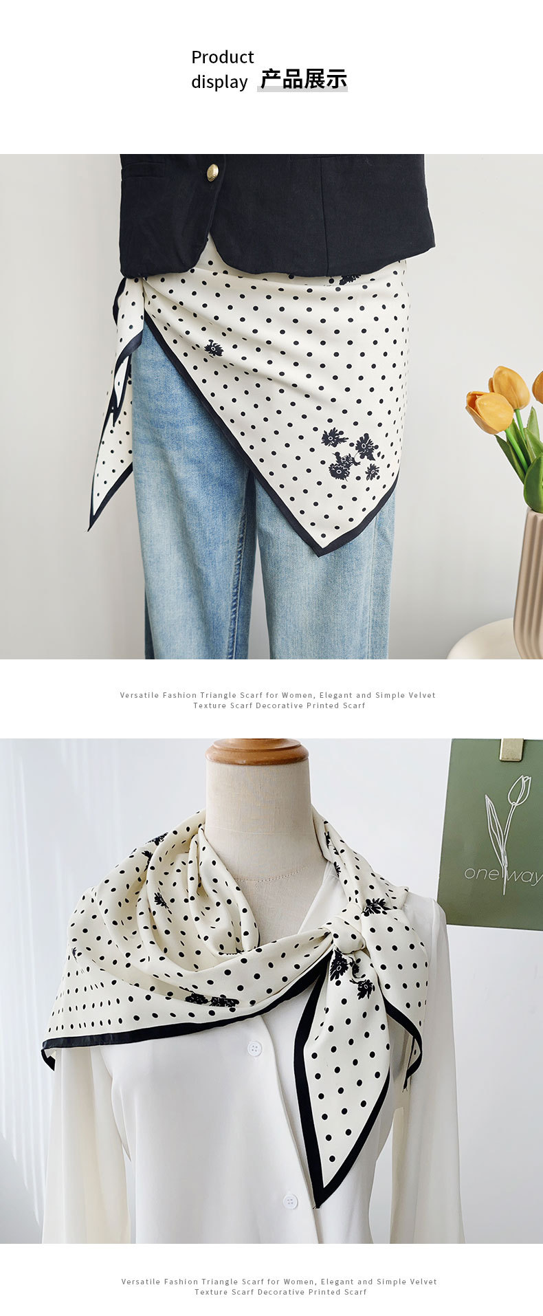 Bufanda triangular con estampado de lunares de sentido simple y avanzado, estilo literario coreano, bufanda de viaje de moda para damas, bufanda triangular delgada