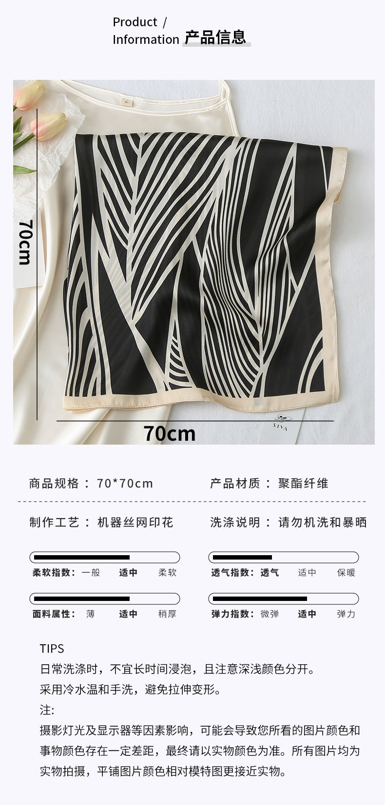 70 bufandas cuadradas de seda de mujeres coreanas estriadas camisas de impresión trajes bufandas profesionales de moda bolsas de pañuelo correa de pelo