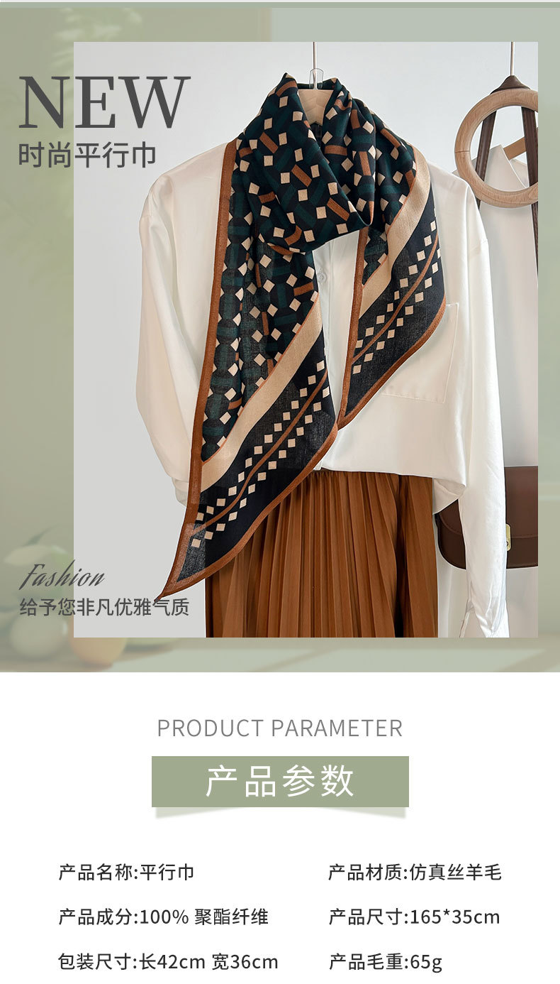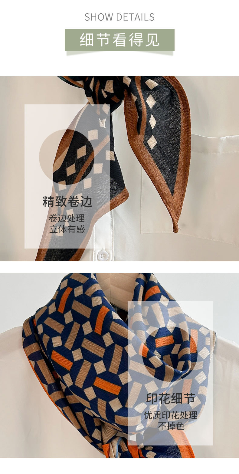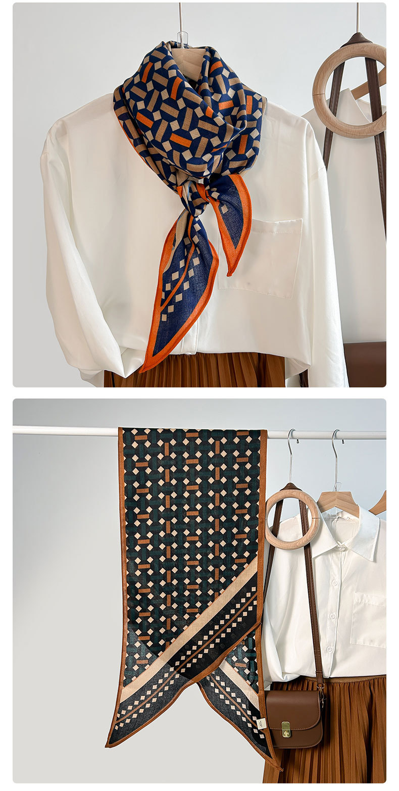 Alta sensación de tendencia simple impresión geométrica seda simulación toallas paralelas de una sola capa nicho mujer toallas de seda de lana retro