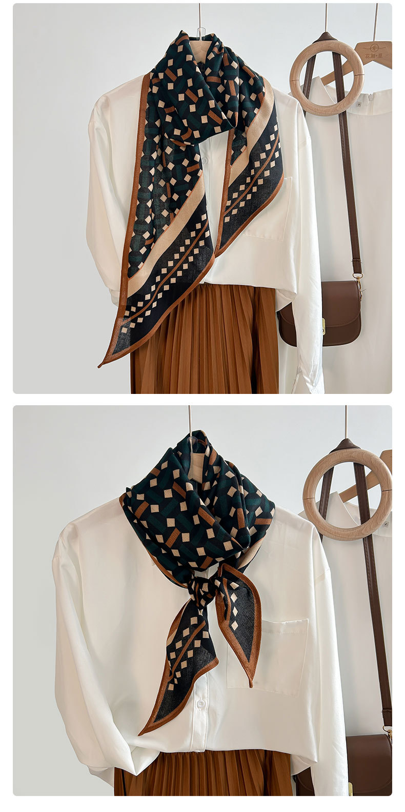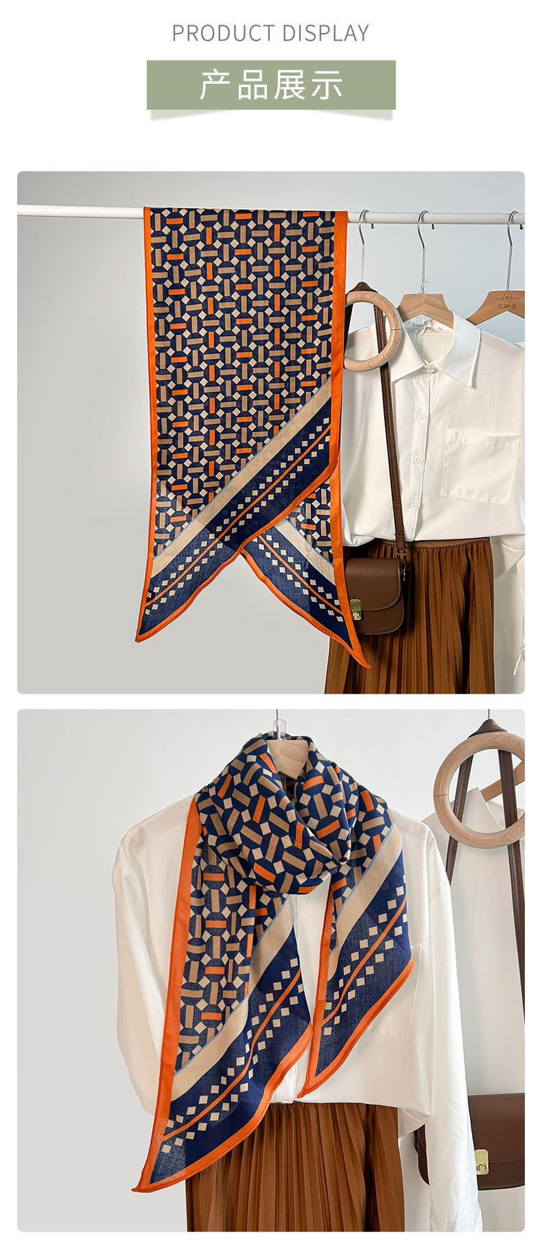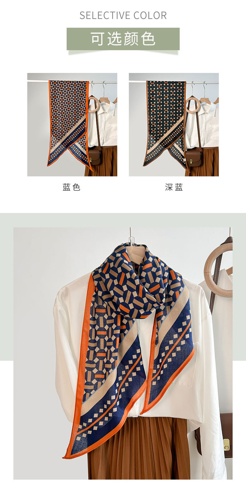 Alta sensación de tendencia simple impresión geométrica seda simulación toallas paralelas de una sola capa nicho mujer toallas de seda de lana retro