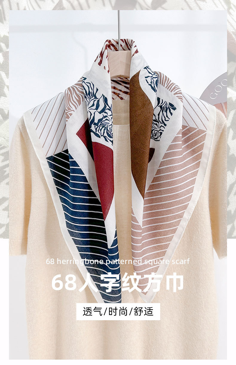 Japón y Corea del Sur de alto valor facial línea de moda extranjera flor impresión bufandas de moda femenina bufandas de moda profesional herringbone bufandas