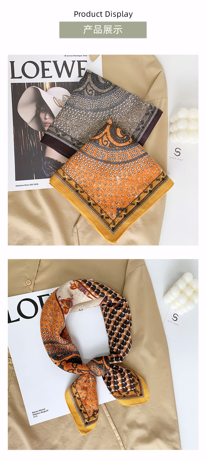 Alto sentido 68 toallas de estilo coreano damas de moda profesional retró nicho bufandas de impresión de división toallas cuadradas
