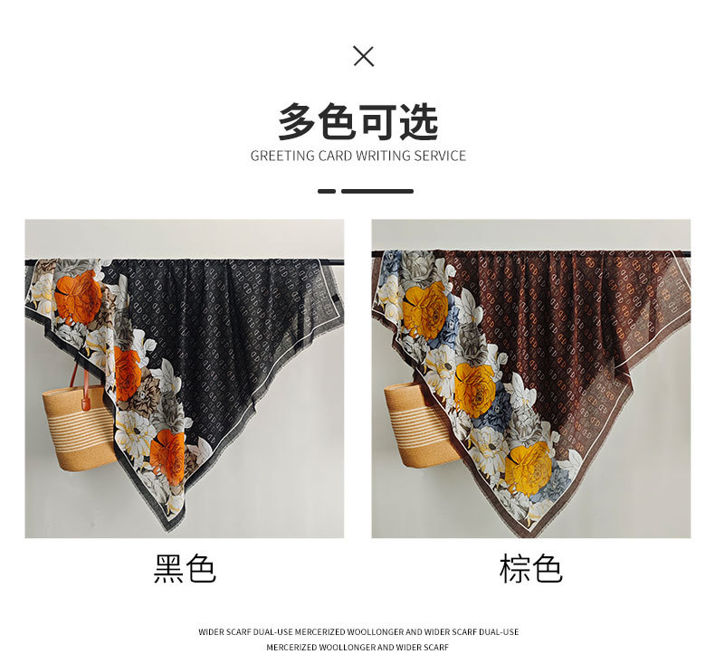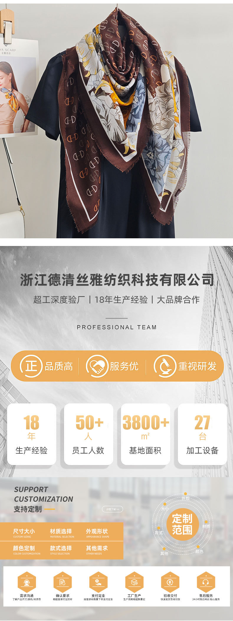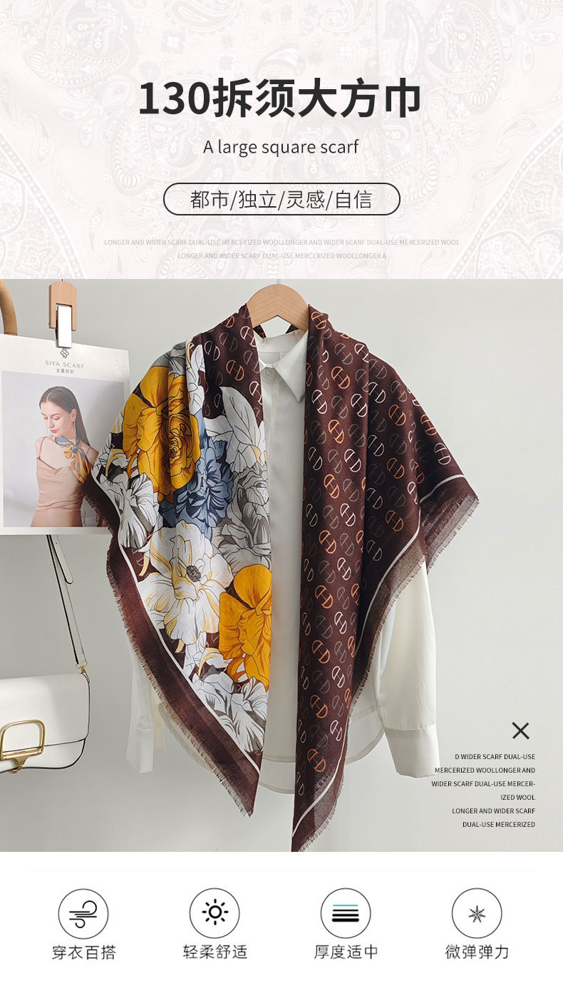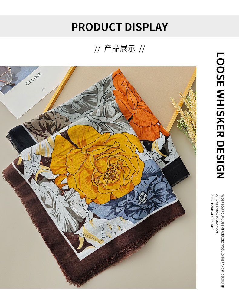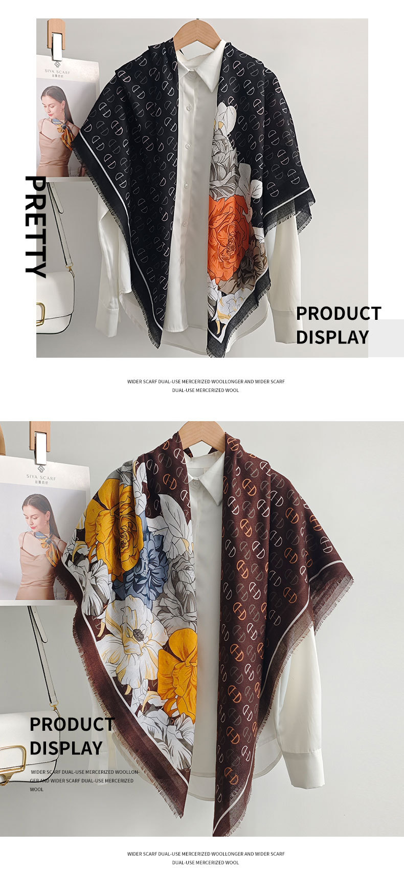 Diseño a la moda, repetición gradualmente, letra D, bufanda estampada de flores, personalidad femenina, chal de lujo ligero de alta gama