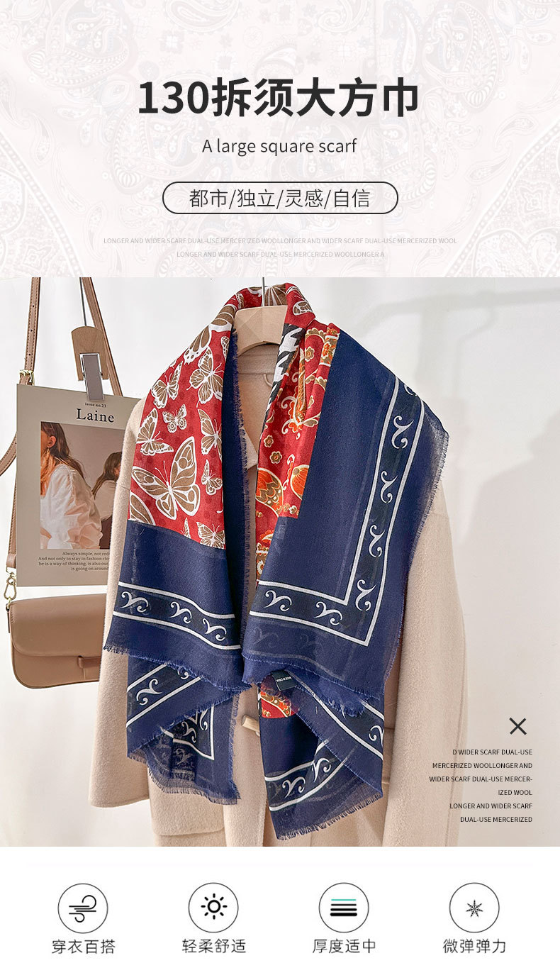 130 toallas cuadradas de primavera y verano de moda moda coreana vintage mujer alta sensación de impresión exterior con un chal