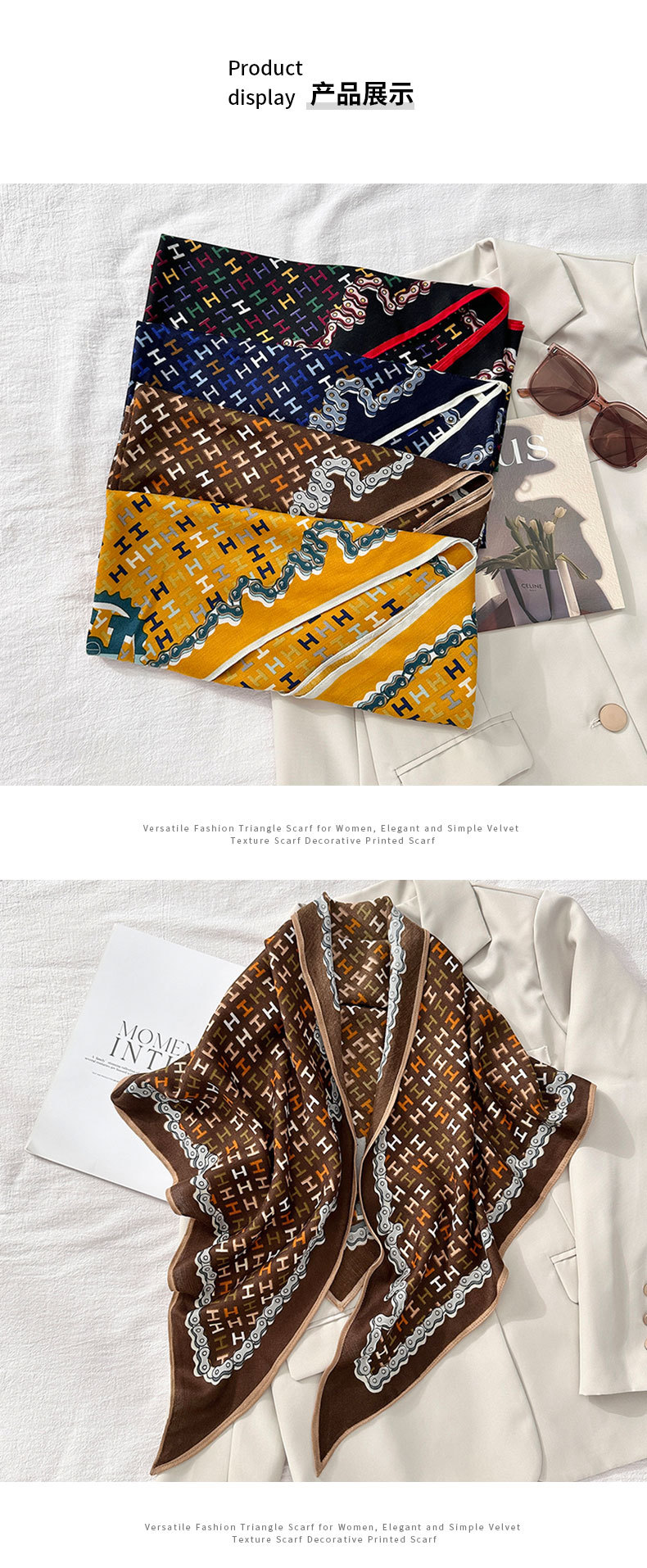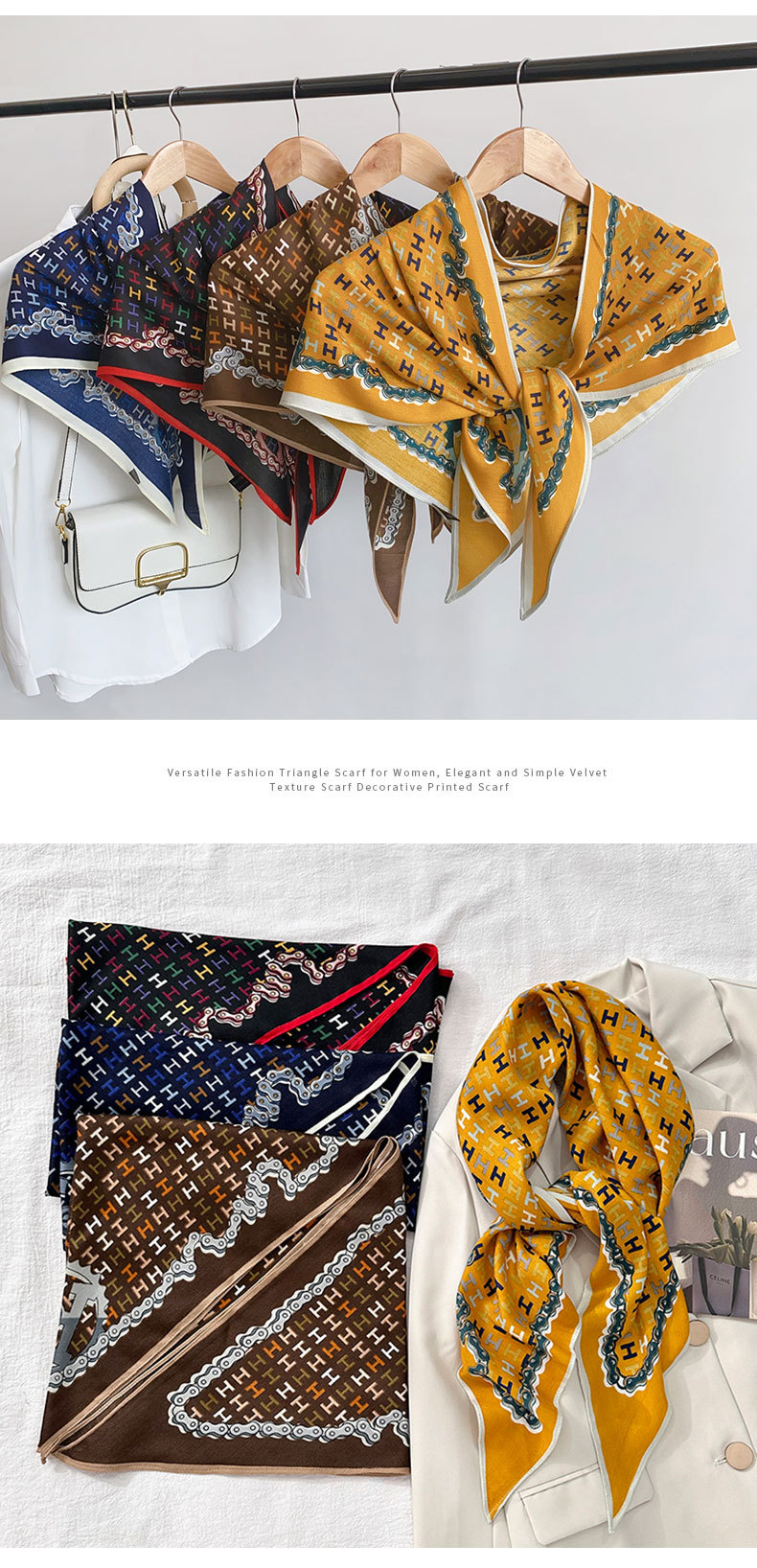 Viajes de viaje fuera de la cadena letra impresa toallas triangulares coreanas de otoño moda elegante con chal