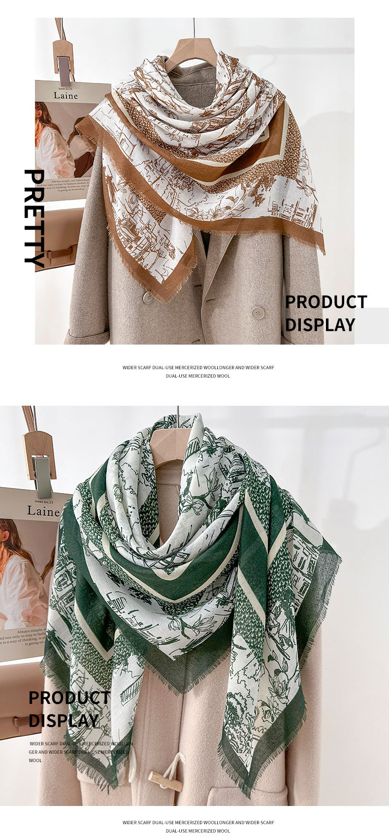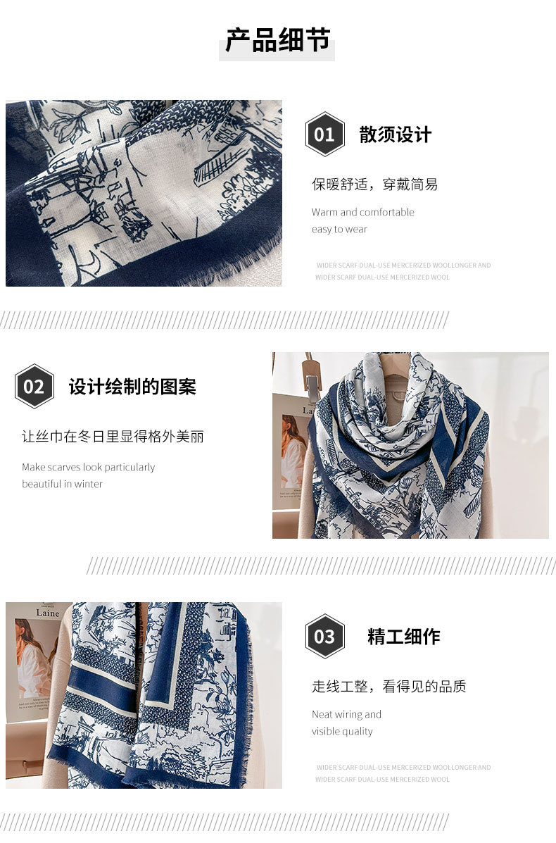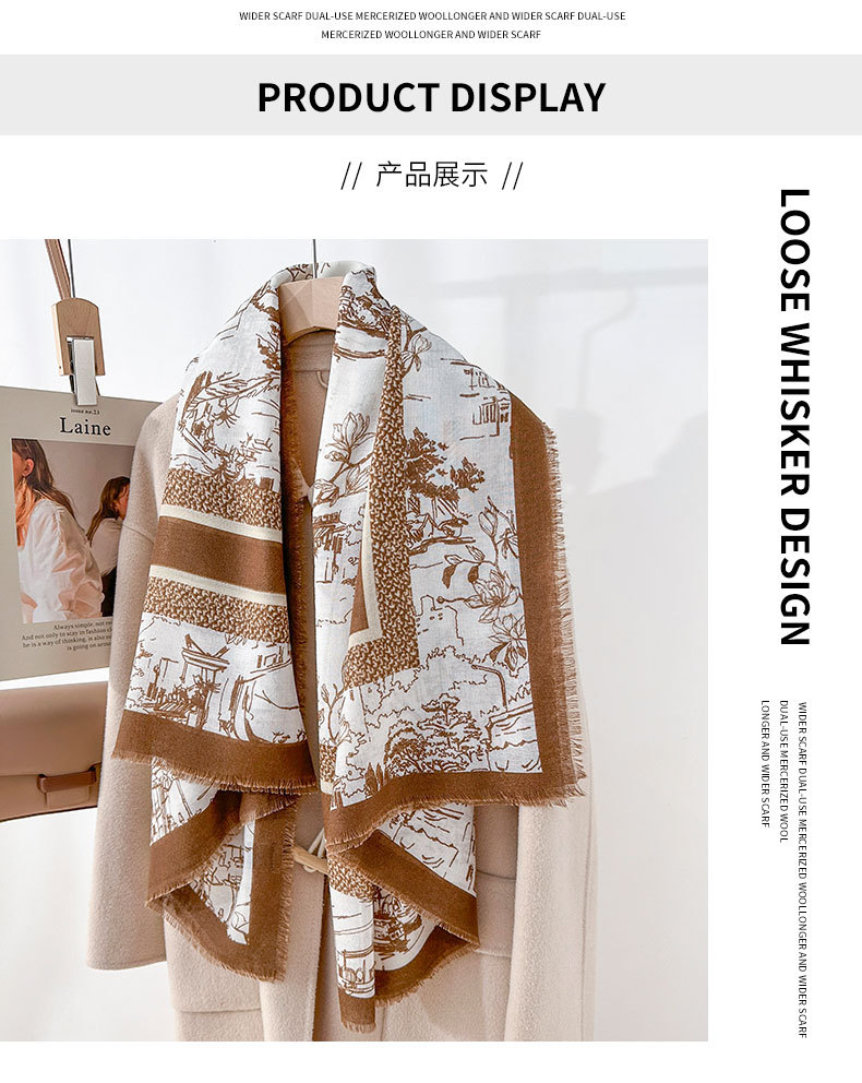Nicho coreano retrógrado flor flor impresión toallas cuadradas de alta sensación desmontable toallas cuadradas de moda otoño-invierno