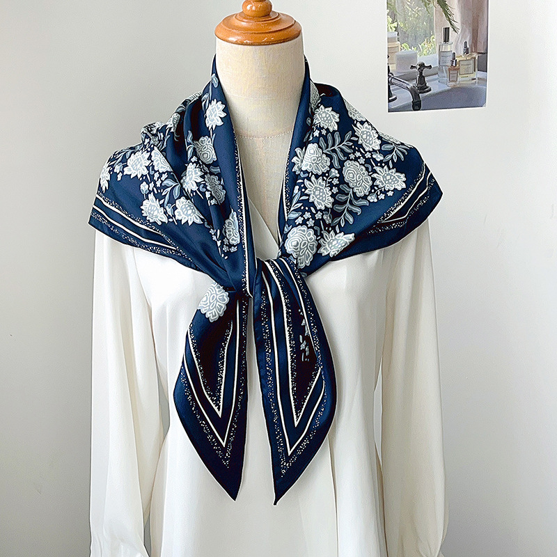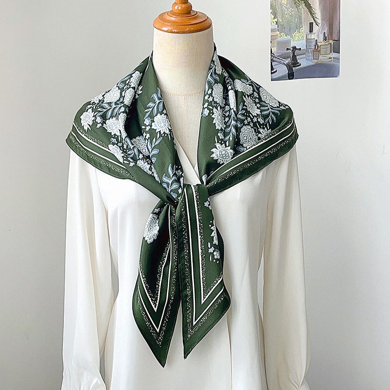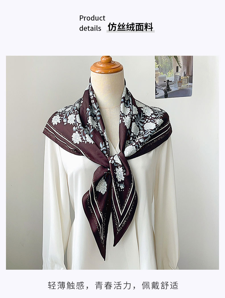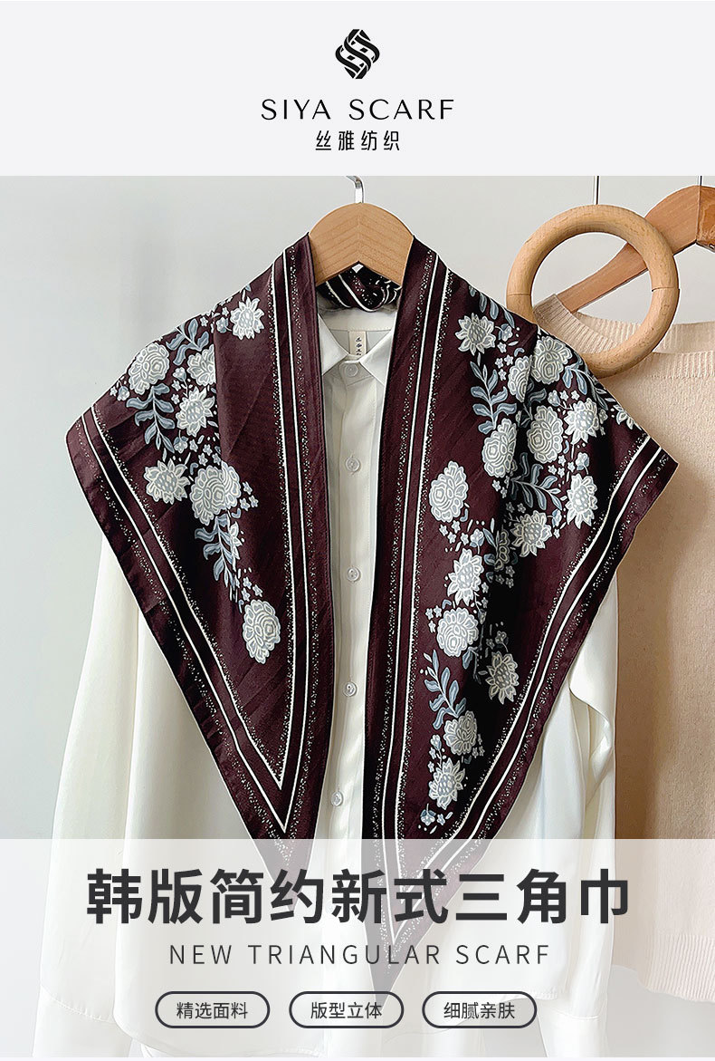Vintage flor triangular bufandas impresas bufandas de seda temperamento bufandas delgadas bufandas de decoración bolsas bufandas de cabello bandas de pelo chal