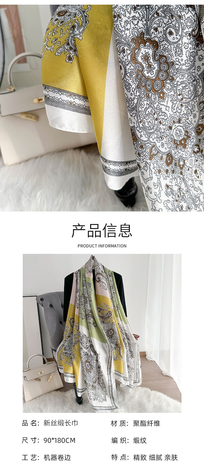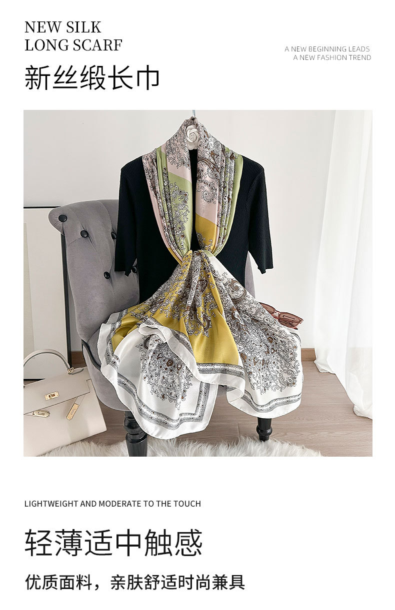 Pañuelo de seda fino de primavera y verano, pañuelo largo con estampado de alta calidad, nuevo pañuelo de protección solar de viaje de satén de seda, chal de viento étnico, protector solar femenino