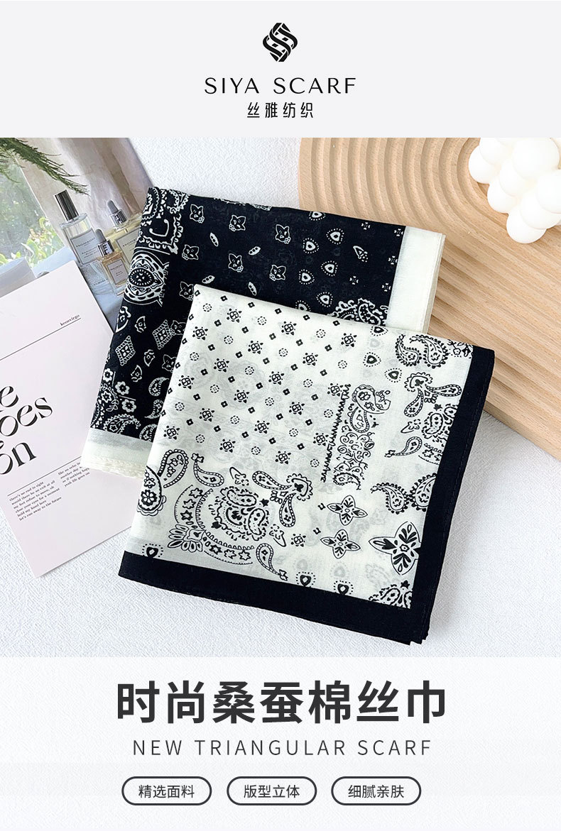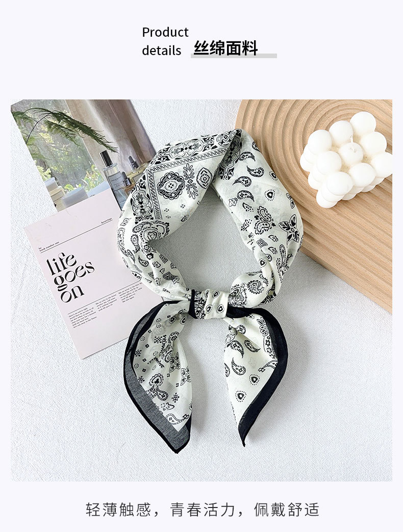 Primavera y verano nuevo estilo retro anacardo flor seda algodón bufanda cuadrada bufanda de seda pequeña bufanda de mujer cuello de temperamento de alta calidad bufanda fina