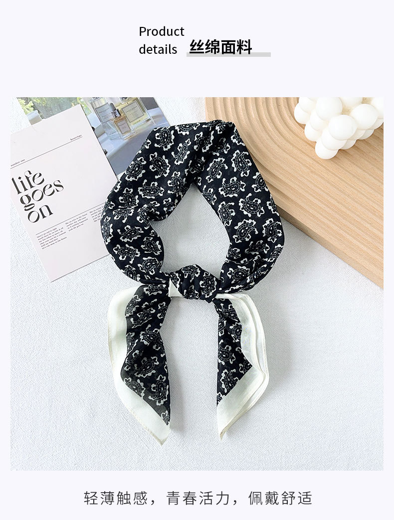 Primavera y verano nuevo estilo retro anacardo flor seda algodón bufanda cuadrada bufanda de seda pequeña cuello femenino temperamento de alta calidad bufanda pequeña