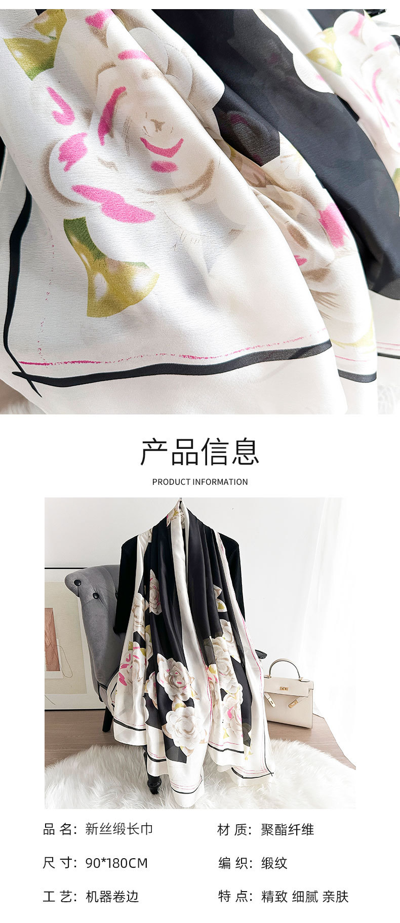Pañuelo de seda estampado de alta calidad para mujer, estilo fino de primavera y verano, bufanda de todo fósforo, nuevo chal de protección solar de seda de imitación de satén de seda