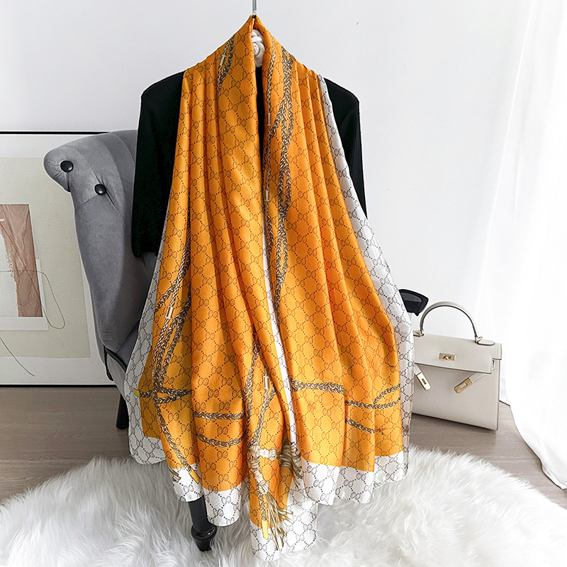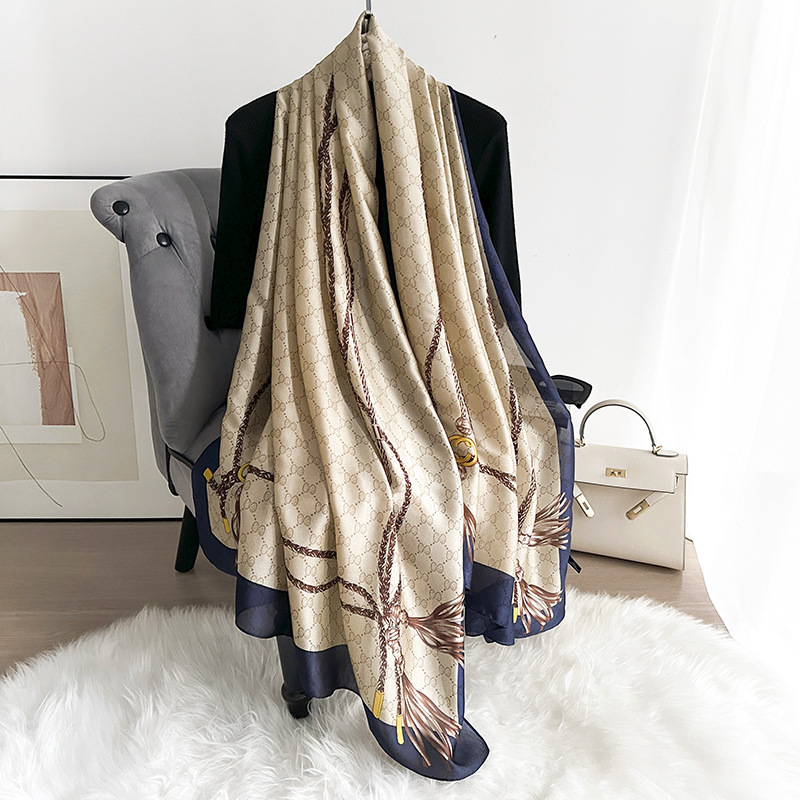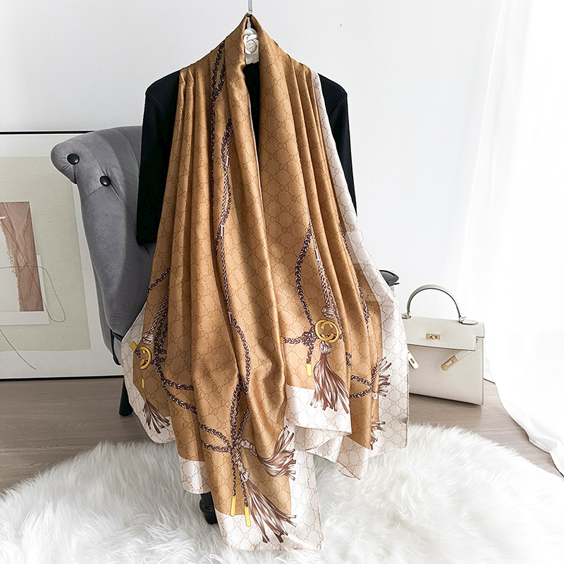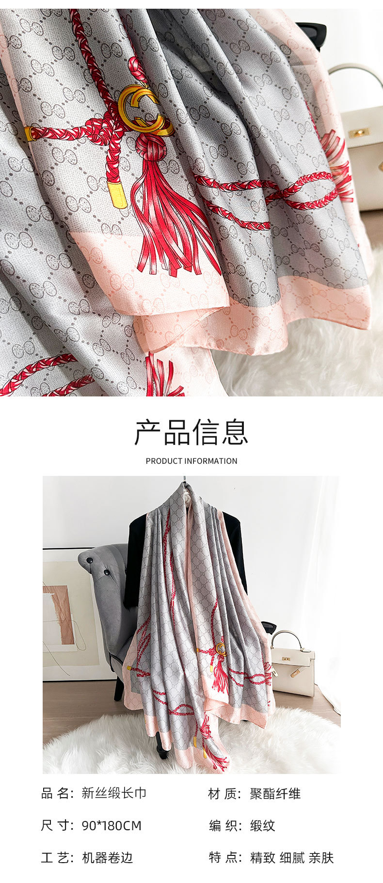 Bufanda de seda de satén de seda nueva marca de moda Bufanda de seda larga de gama alta Bufanda delgada de verano para mujer Bib de todo fósforo para madre de regalo chal