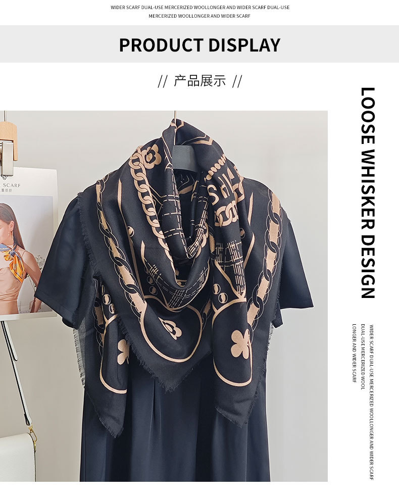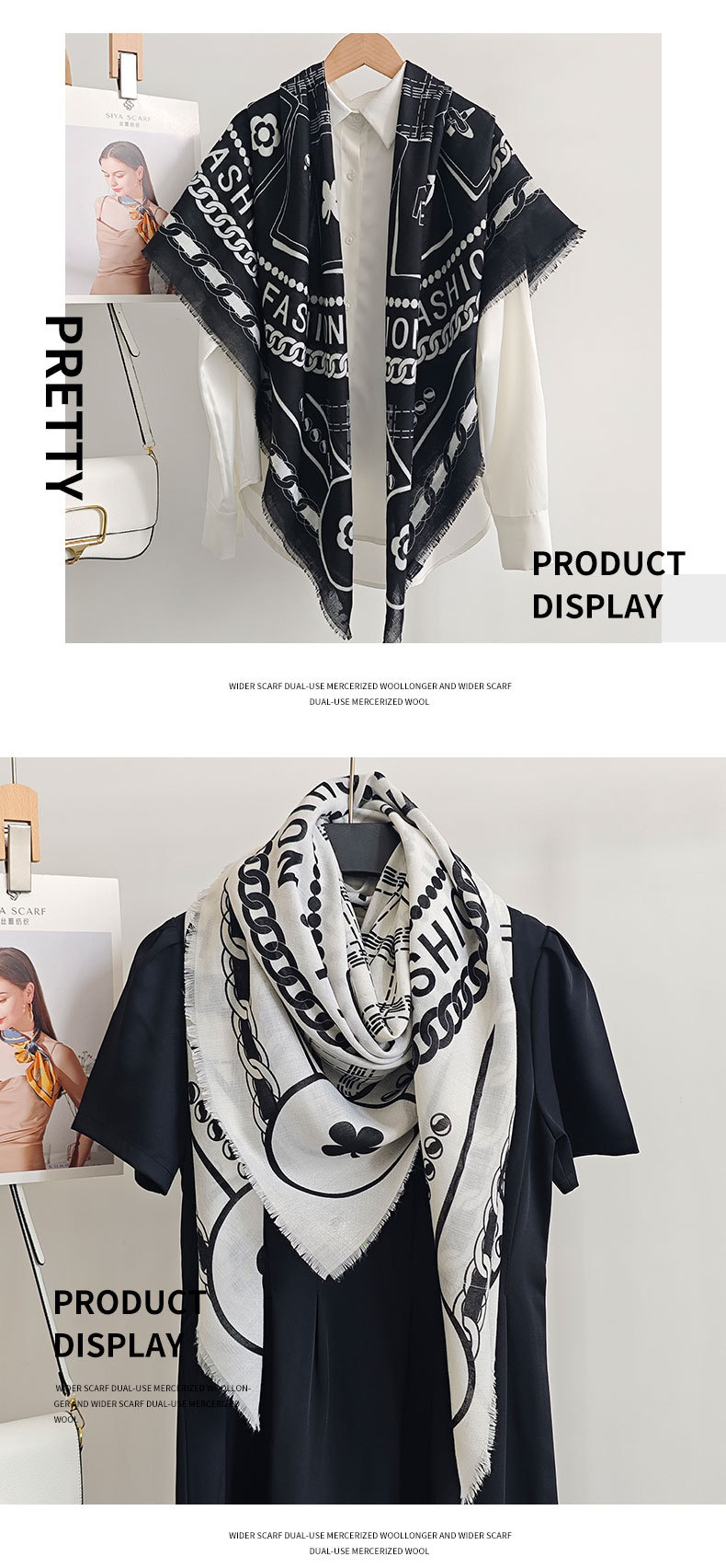 Creatividad transfronteriza europea y americana, lujo ligero, moda, impresión geométrica, bufanda cuadrada grande, damas, chal de viaje de alto valor y de moda