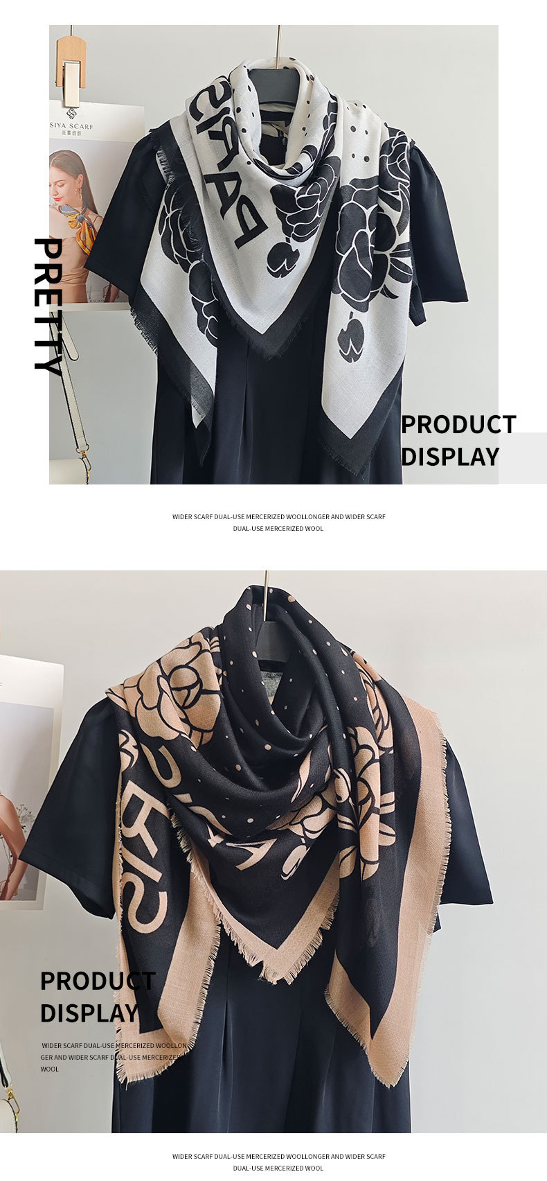Bufanda a juego con ambiente de nicho retro de primavera y verano, chal fino con estampado de lunares florales simples para damas coreanas