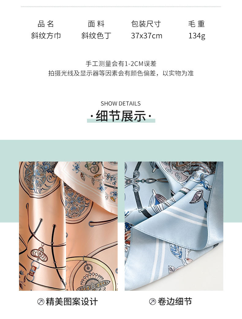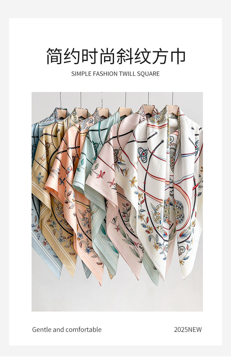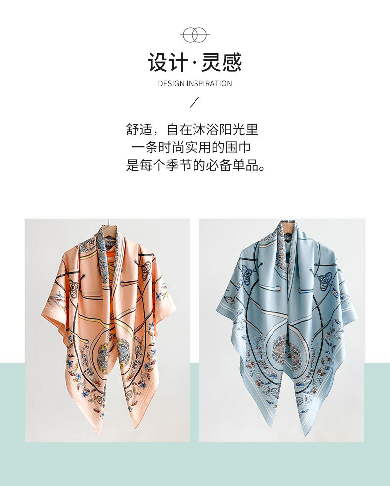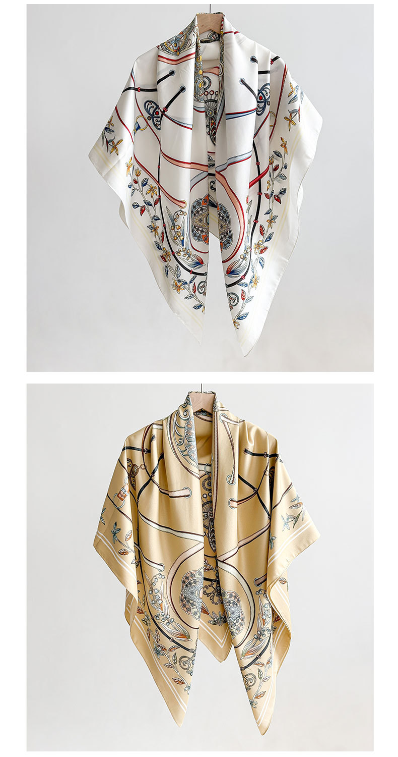Toalla cuadrada impresa de nicho de estilo étnico de tendencia creativa, foto de fotografía de mujer de primavera y verano con bufanda fina de sarga