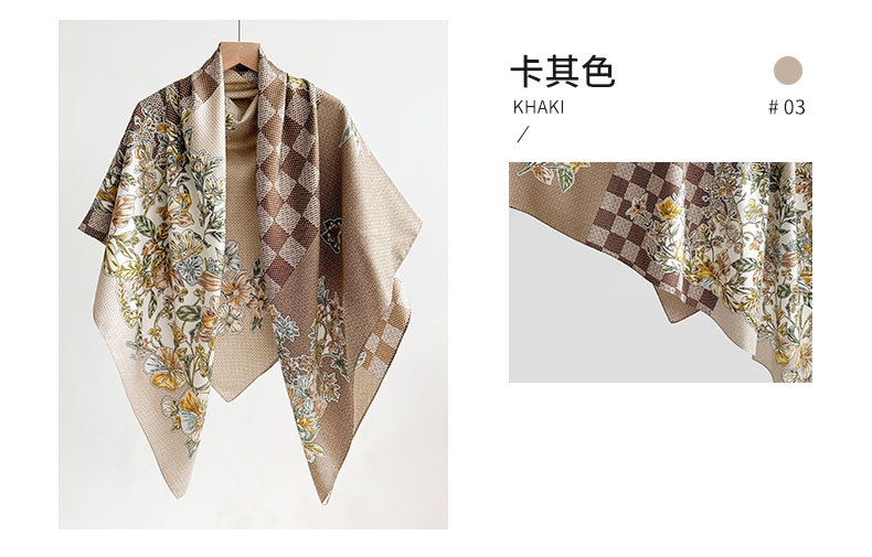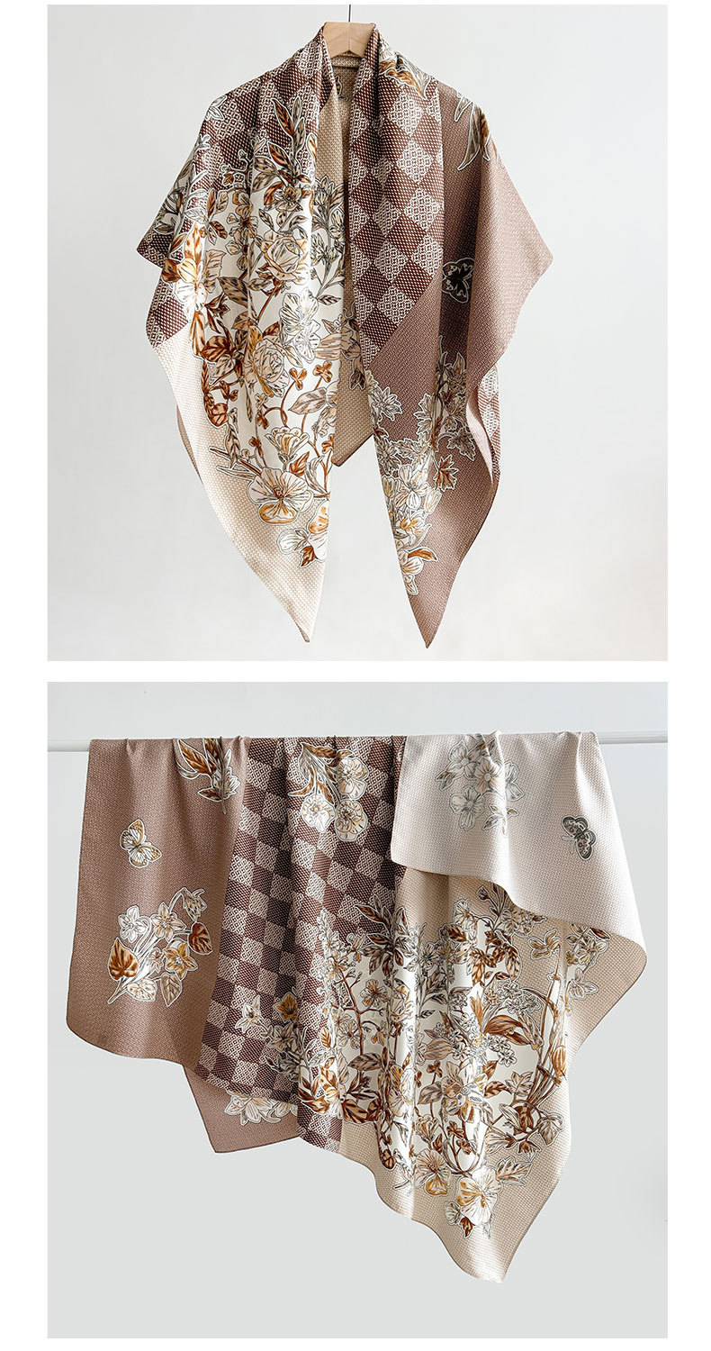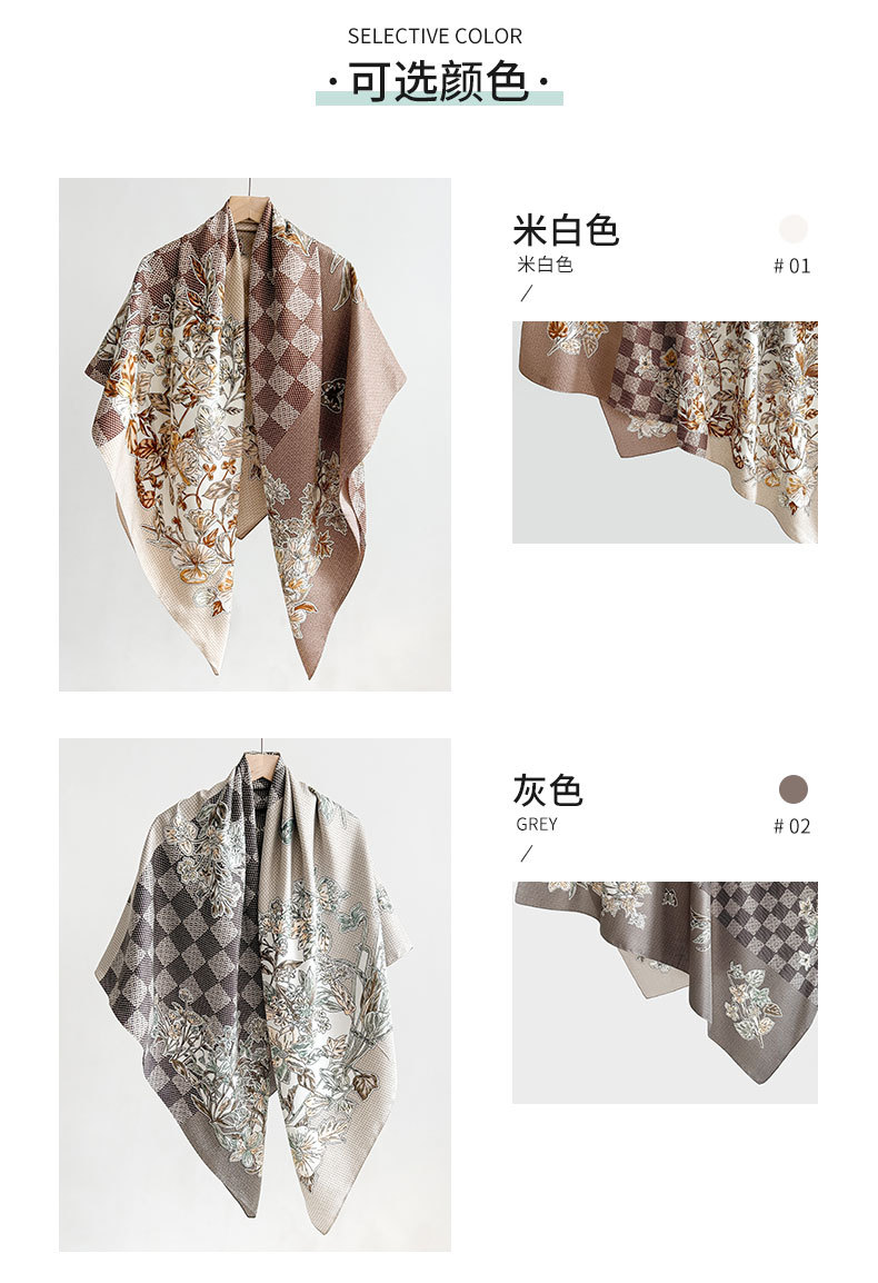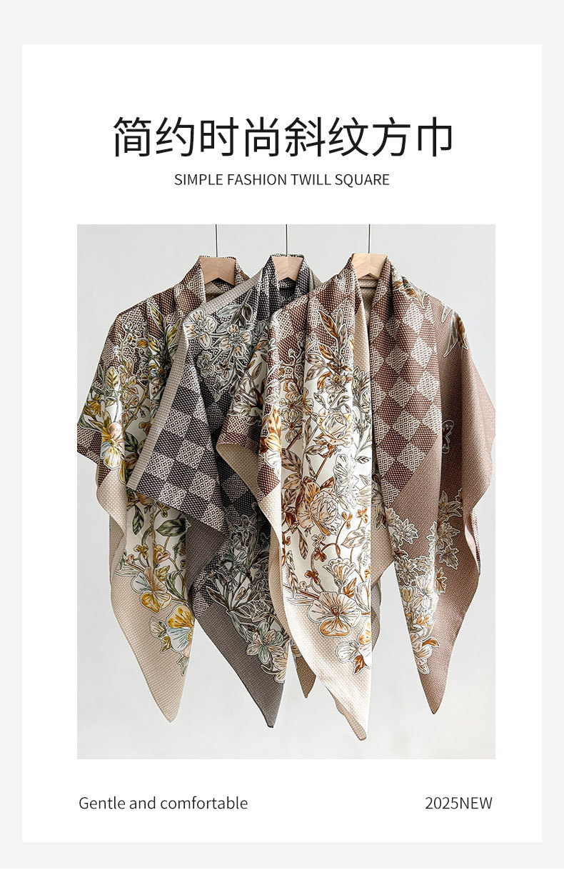 Nuevos productos transfronterizos de estilo europeo y americano, bufanda de seda estampada a cuadros de flores, estilo artístico de primavera y otoño, bufanda cuadrada de sarga de temperamento de atmósfera