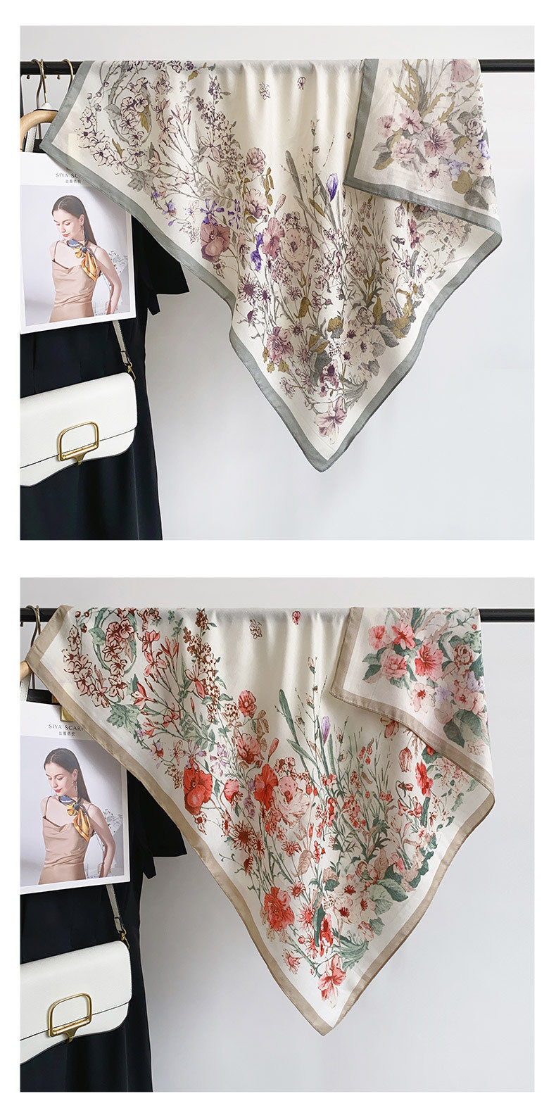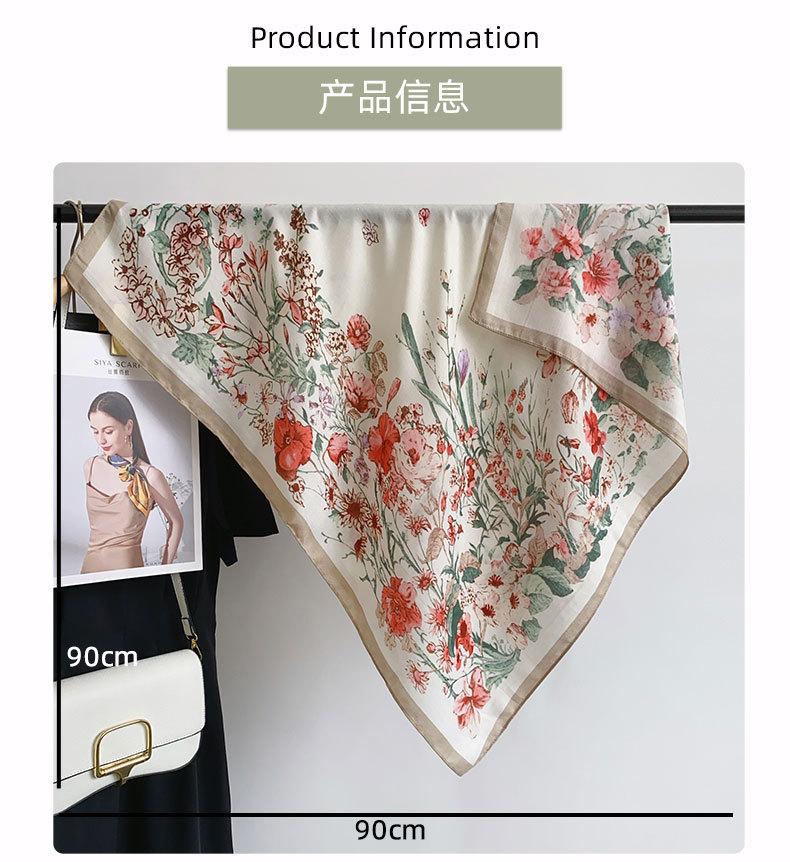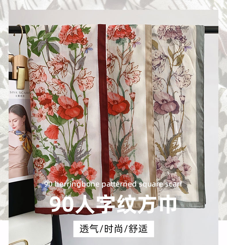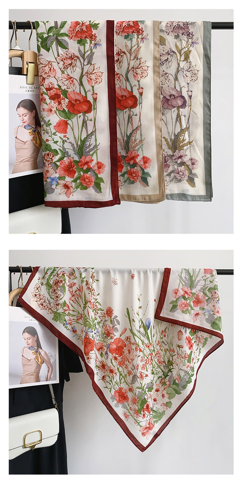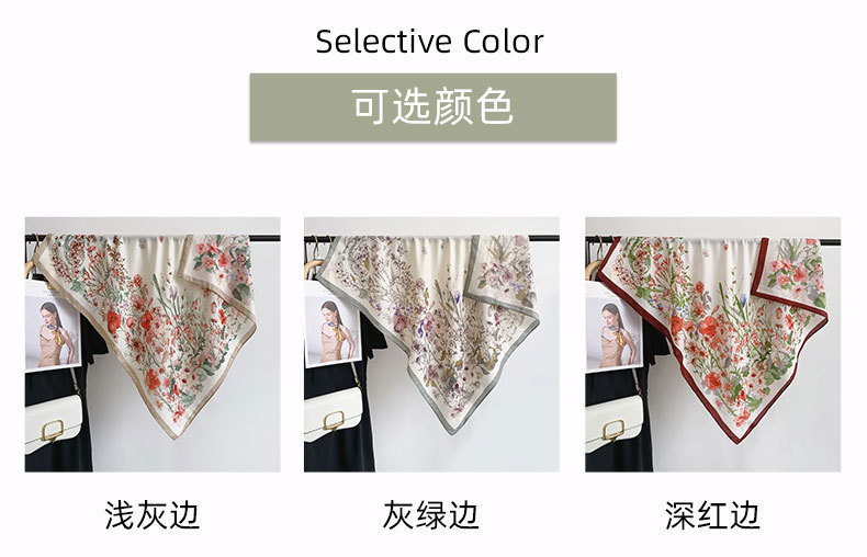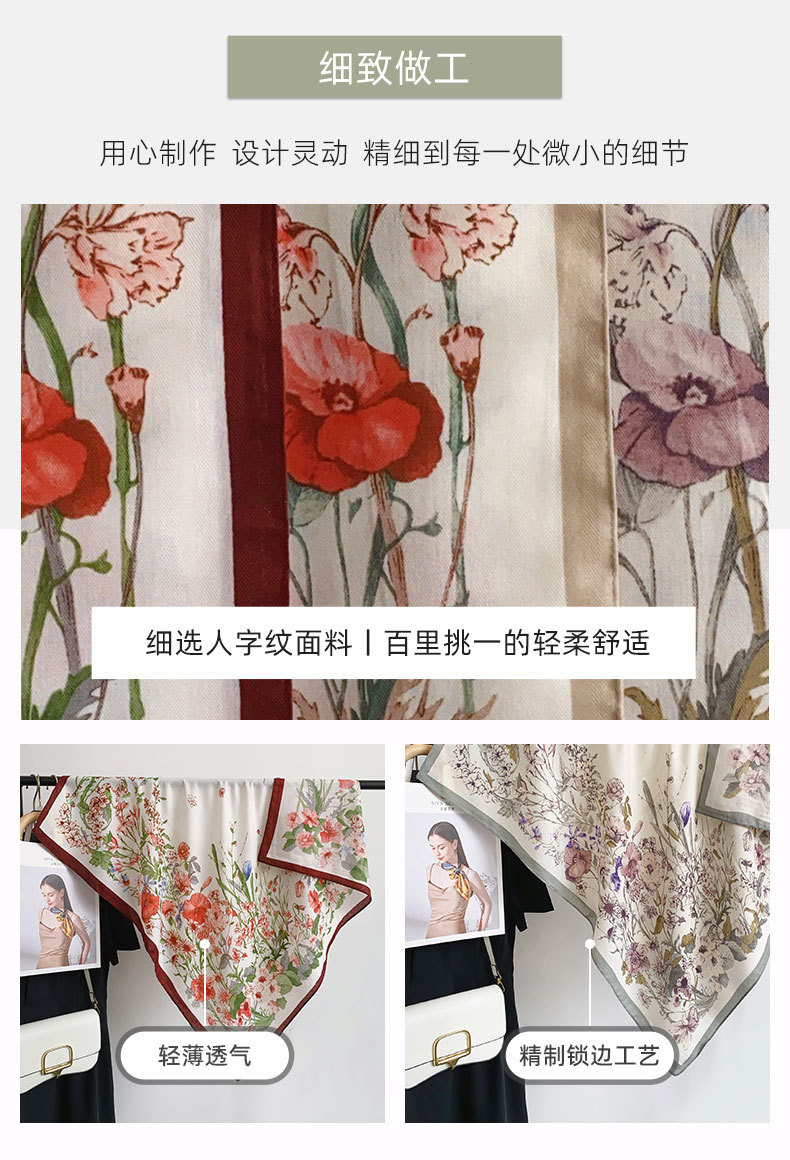 Cuadrado coreano pequeño bufandas frescas de impresión de flores japonesas y coreanas estilo de arte mujeres moda moda moda de viaje con un chal