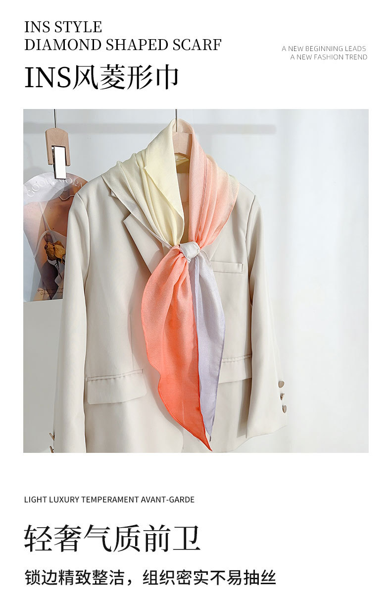 Luz de lujo minimalista creativo delgado bufandas de seda de color gradiente INS dulce dama de alta moda bufandas de diamante de seda