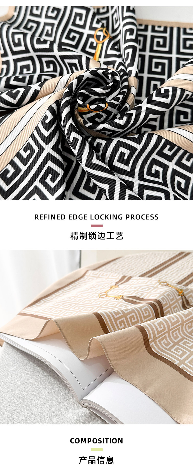 INS estilo de moda Geometría 90 bufandas de seda de estilo de lujo ligero nicho creativo bufandas decorativas profesionales