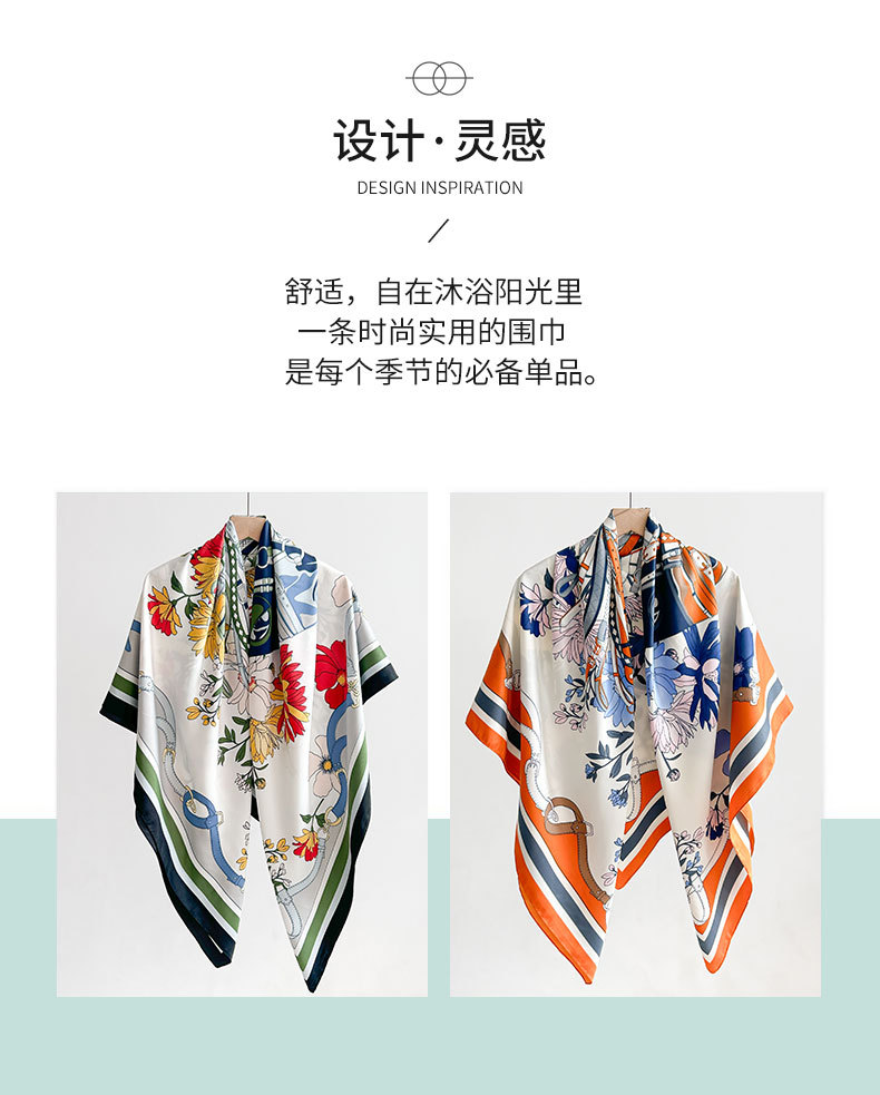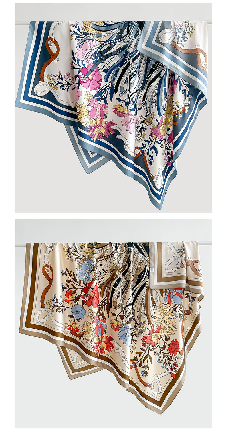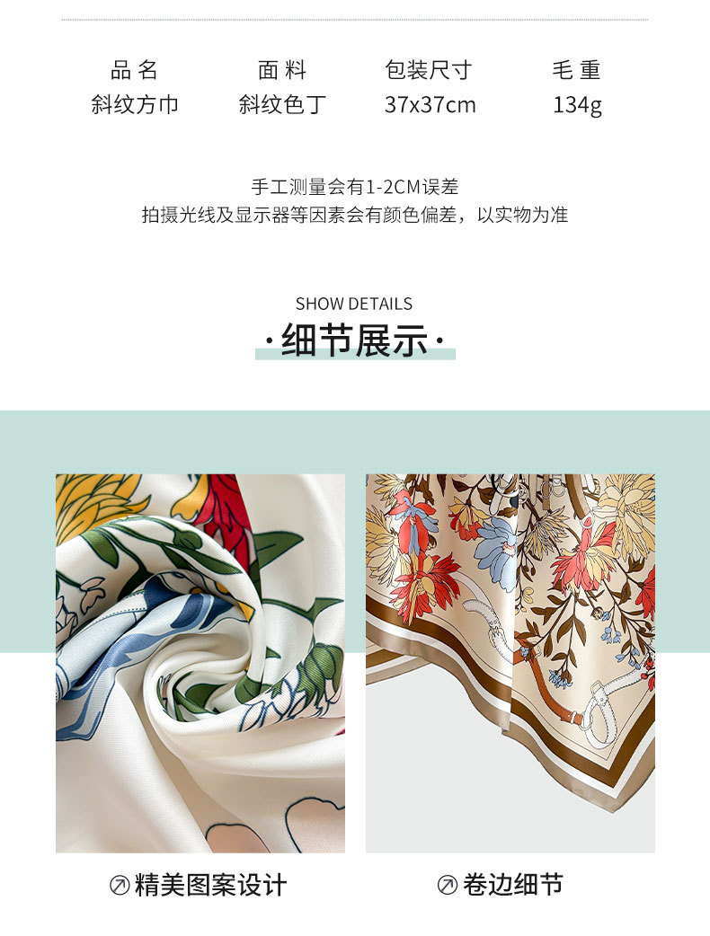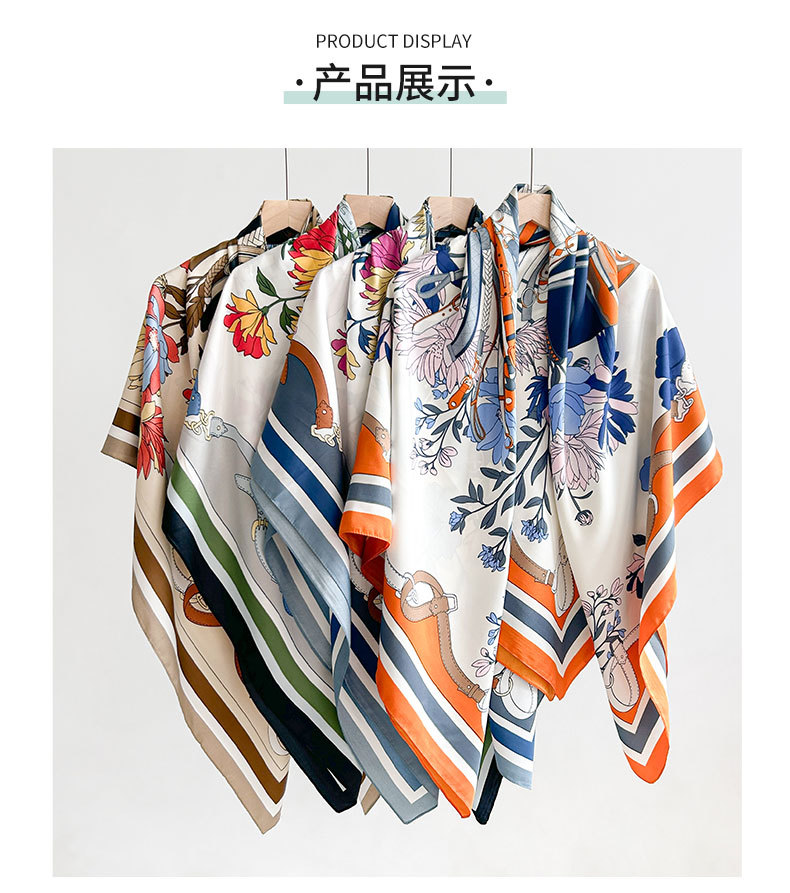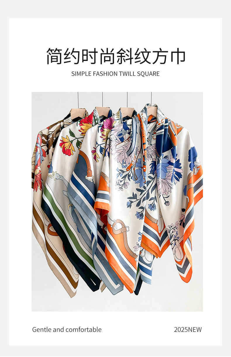 Retro de alta gama señoras, lujo ligero, diseño de moda, impresión 130 bufanda cuadrada de sarga, chal fino de celebridades de Internet coreano