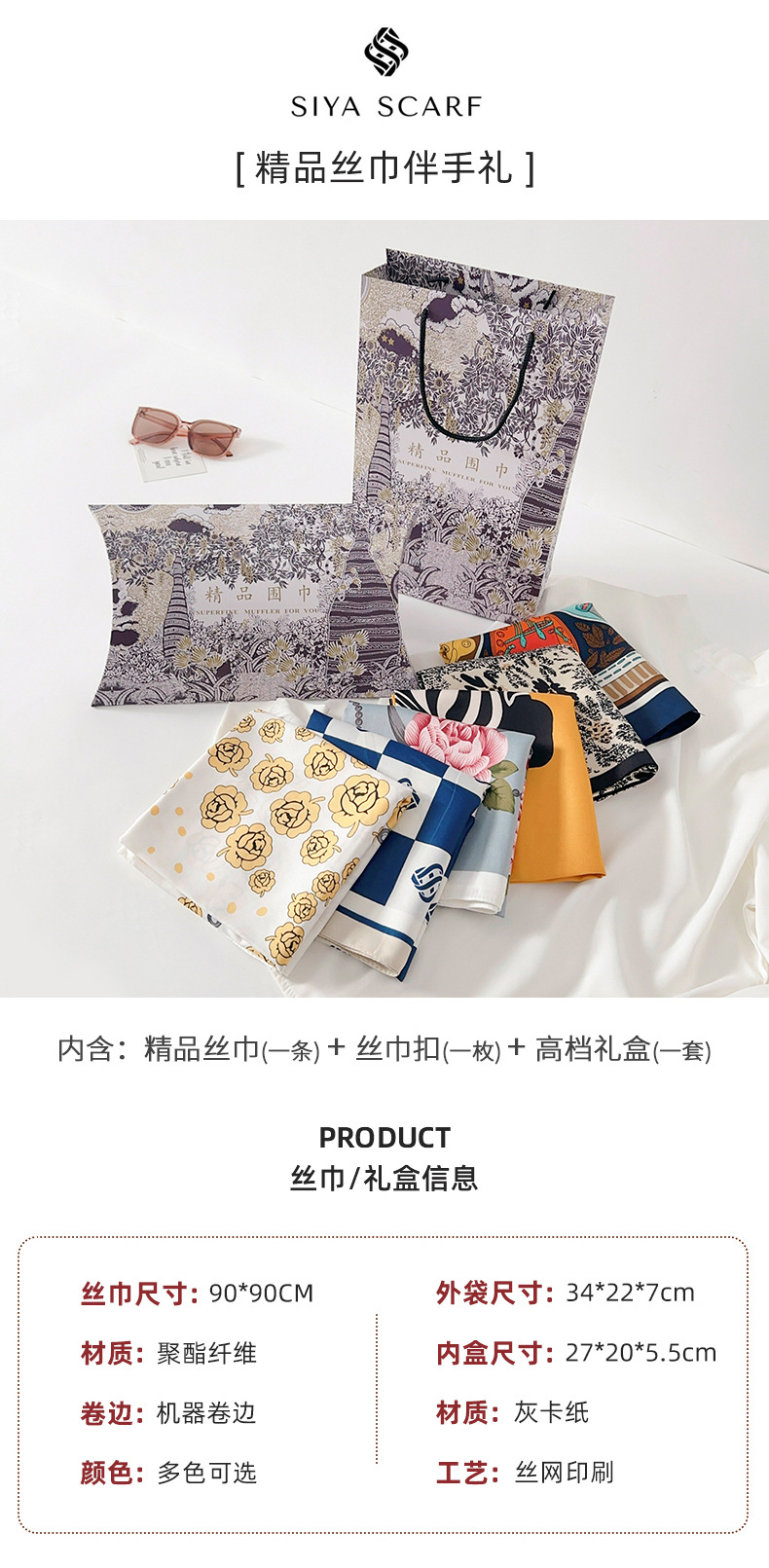 90 toallas cuadradas de moda profesional coreana para mujeres con bufandas de seda para enviar a la madre bufandas de cumpleaños set de caja de regalo