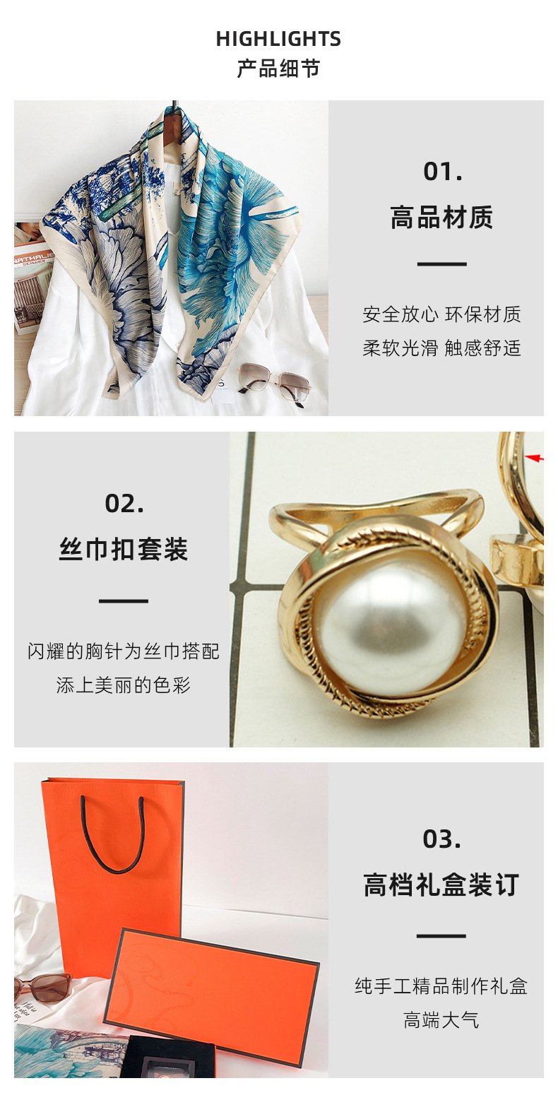 Elegante estilo francés flores bufandas de moda bufandas de seda de moda Qixia día de la madre lujosa caja de regalo de moda set