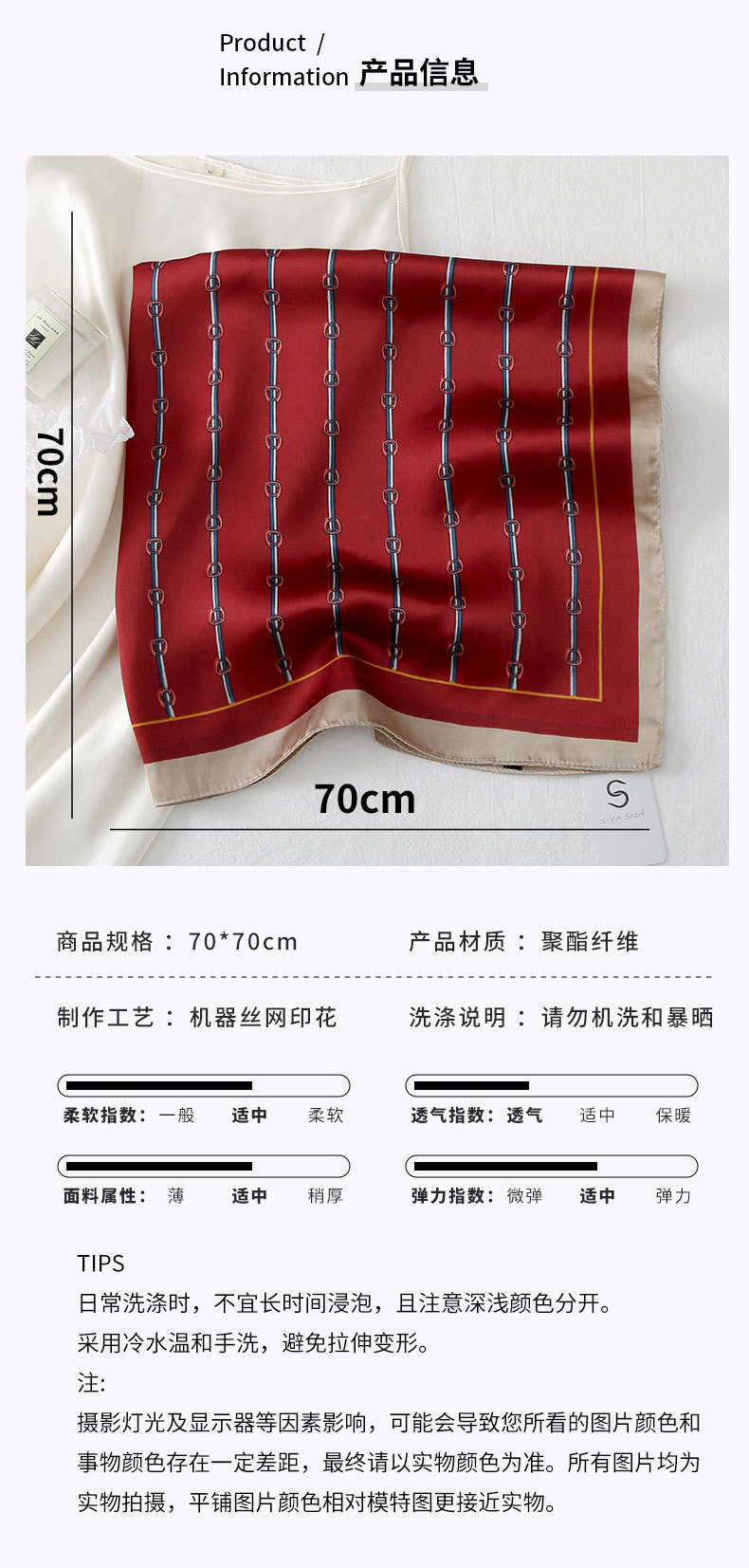 Coreano de alta calidad 70 bufandas cuadradas de impresión de seda femenina bufandas de cabello azafata decoración profesional bufandas de moda