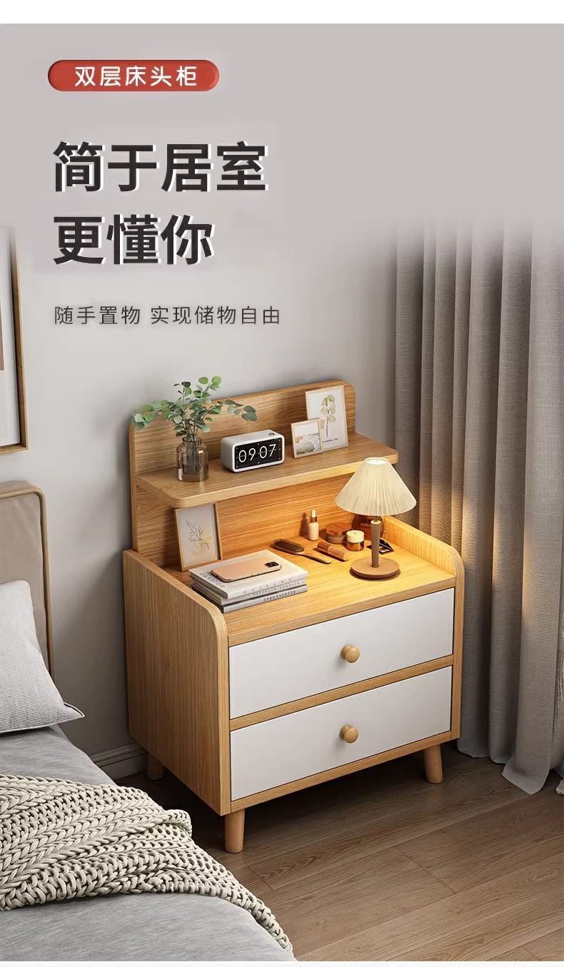 Mesita de noche simple moderno armario de almacenamiento de pierna de madera maciza pequeño dormitorio simple hogar 2024 nuevo estante de cabecera