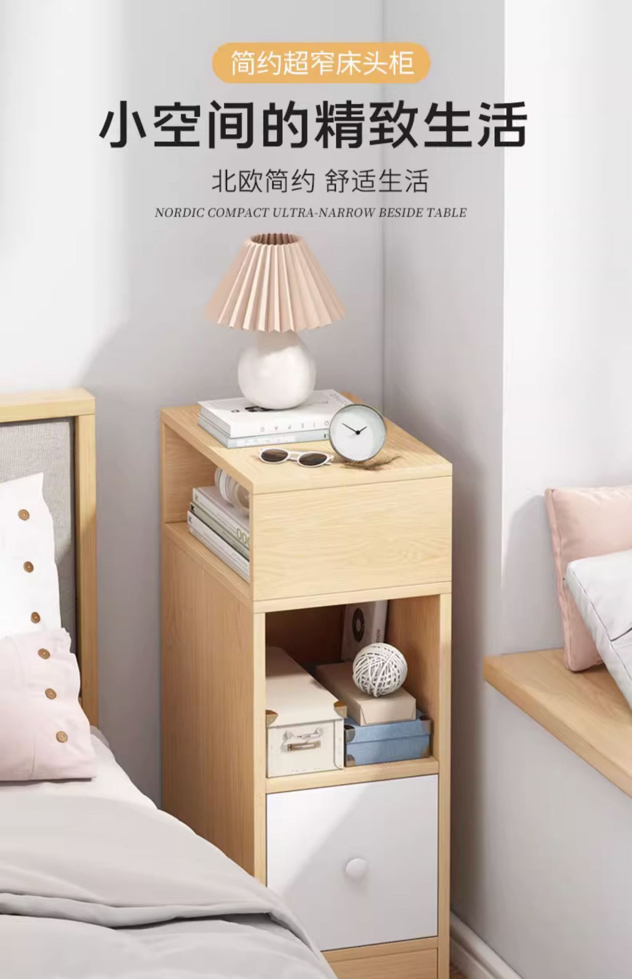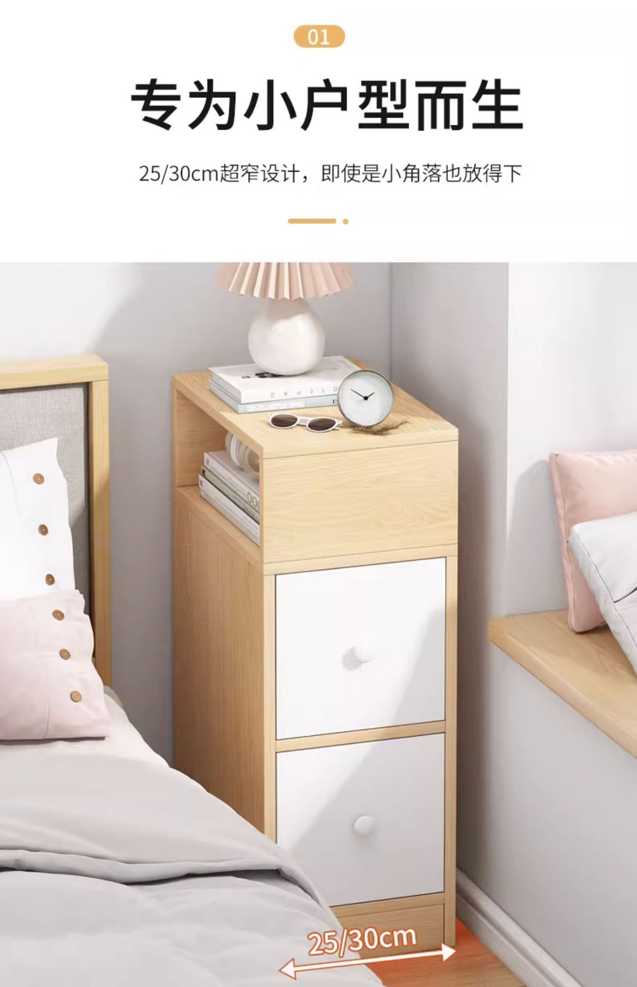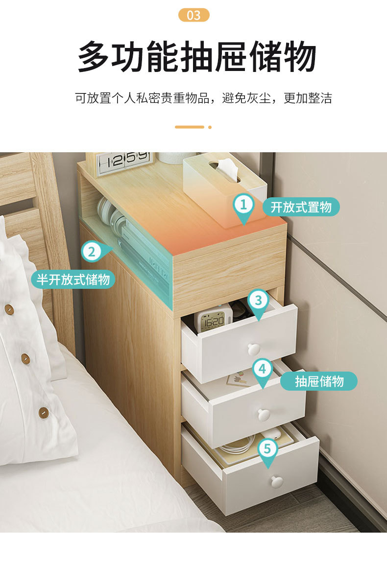Mesita de noche simple moderno hogar dormitorio pequeño gabinete de noche ultra estrecho gabinete de almacenamiento de brecha de pared